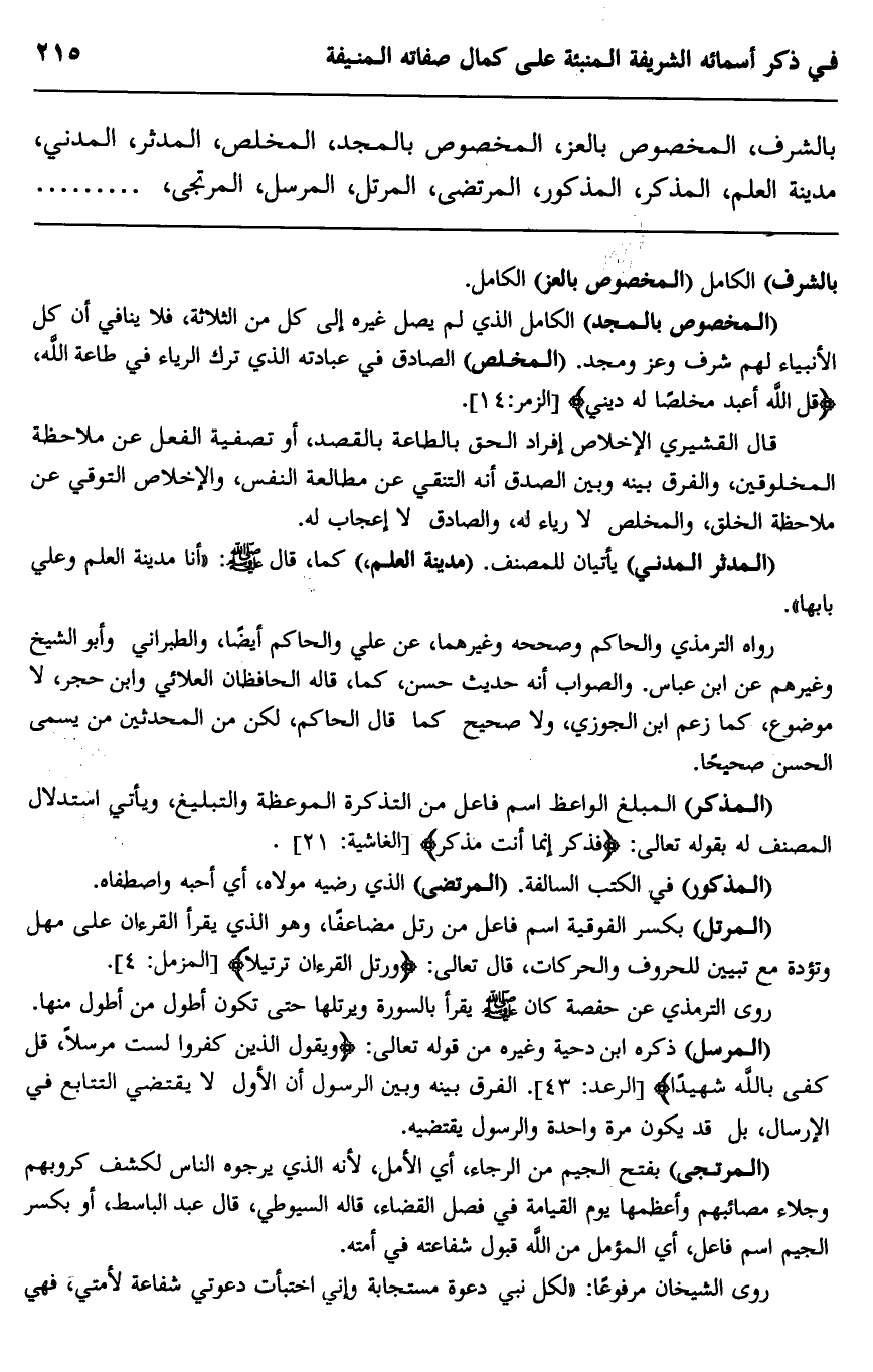 بالشرف، المخصوص بالعز، المخصوص بالمجد، المخلص، المدثر، المدني، مدينة العلم، المذكر، المذكور، المرتضى المرتل، المرسل، المرتجى،