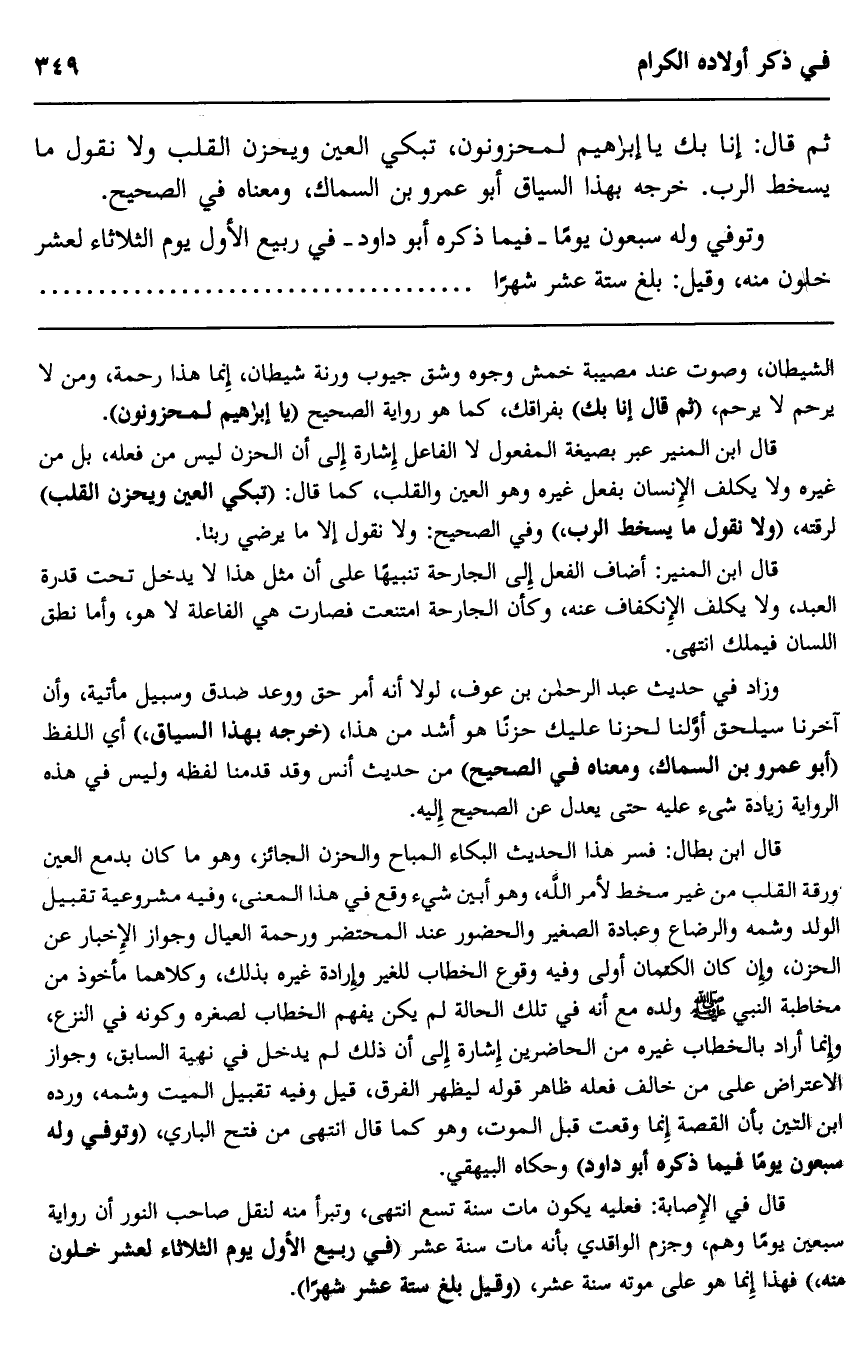 ثم قال: "إنا بك يا إبراهيم لمحزونون، تبكي العين ويحزن القلب ولا تقول ما يسخط الرب". خرجه بهذا السياق أبو عمرو بن السماك، ومعناه في الصحيح.