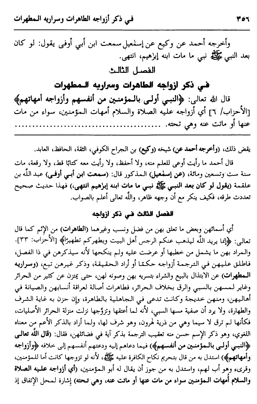 الفصل الثالث: في ذكر أزواجه الطاهرات وسراريه المطهرات
