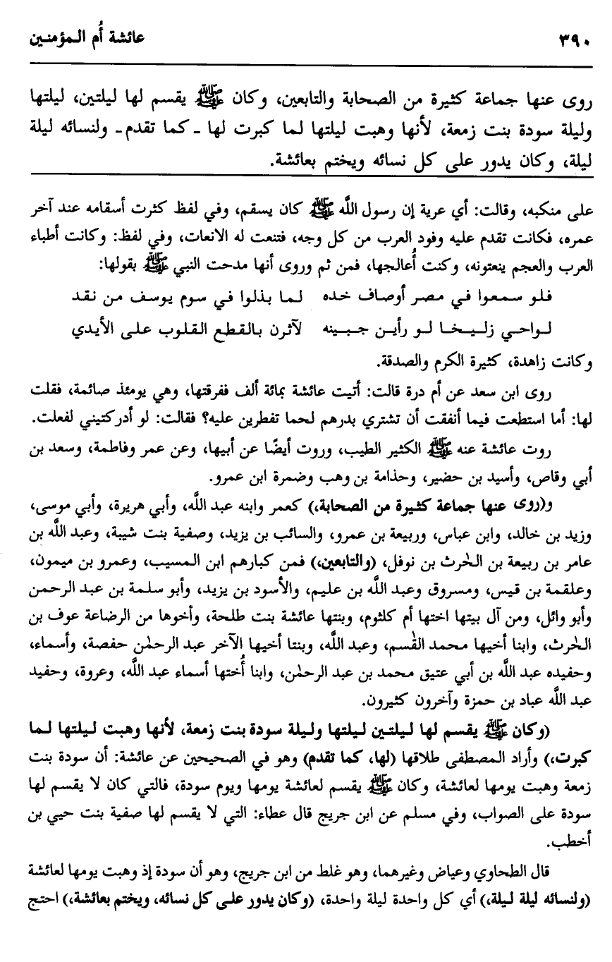 "وكان صلى الله عليه وسلم يقسم لها ليلتين ليلتها وليلة سودة بنت زمعة؛ لأنها وهبت ليلتها لما كبرت" وأرد المصطفى طلاقها "لها، كما تقدم" وهو في الصحيحين عن عائشة: أن سودة بنت زمعة وهبت يومها لعائشة، وكان صلى الله عليه وسلم يقسم لعائشة يومها ويوم سودة، فالتي كان لا يقسم لها سودة على الصواب، وفي مسلم عن ابن جريج قال عطاء: التي لا يقسم لها صفية بنت حيي بن أخطب.
