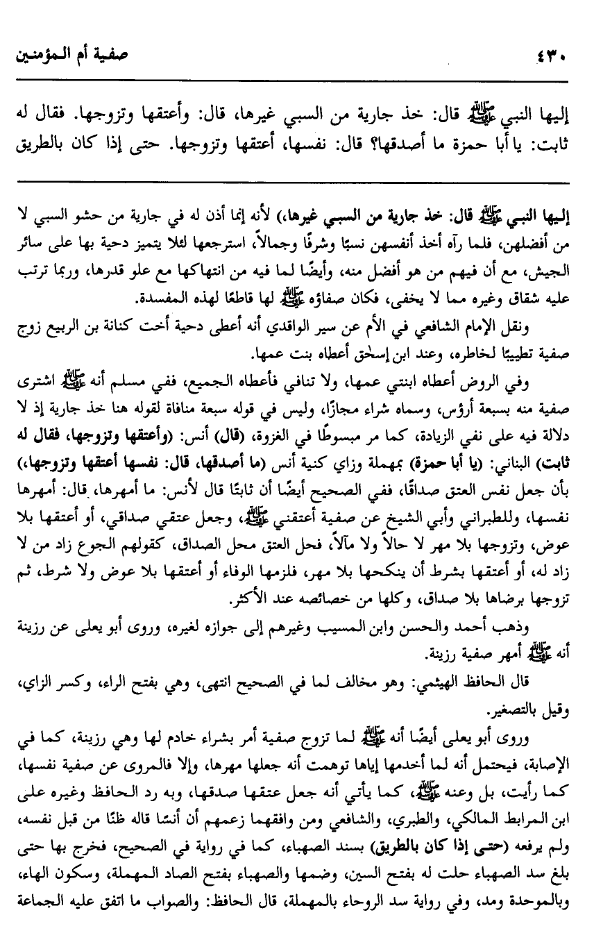 إليها النبي صلى الله عليه وسلم قال: "خذ جارية من السبي غيرها"، قال: وأعتقها وتزوجها. فقال له ثابت: يا أبا حمزة ما أصدقها؟ قال: نفسها، أعتقها وتزوجها. حتى إذا كان بالطريق