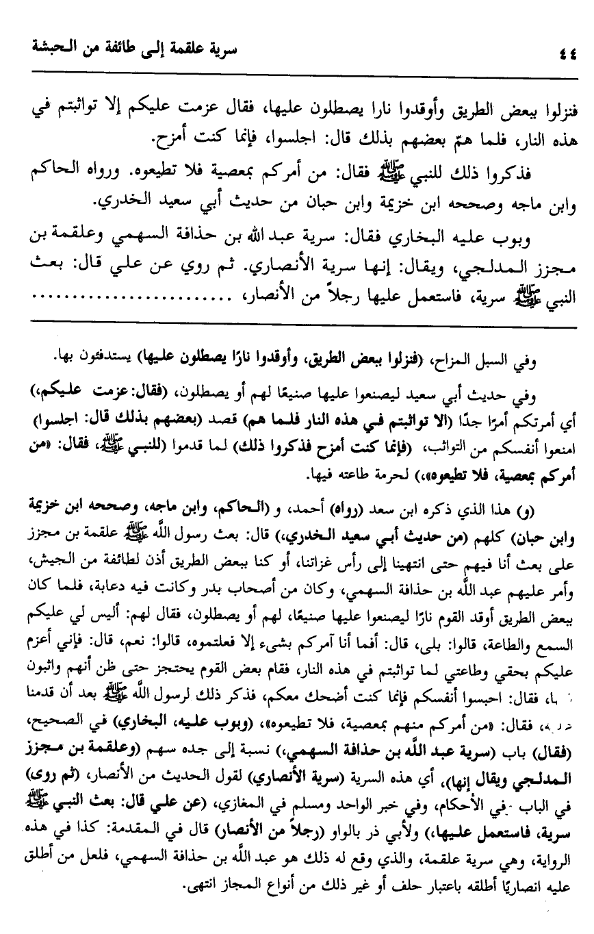 وبوب عليه البخاري فقال: سرية عبد الله بن حذافة السهمي، وعلقمة بن مجزز المدلجي، ويقال: إنها سرية الأنصاري، ثم روي عن على قال: بعث النبي صلى الله عليه وسلم سرية، فاستعمل عليها رجلا من الأنصار،