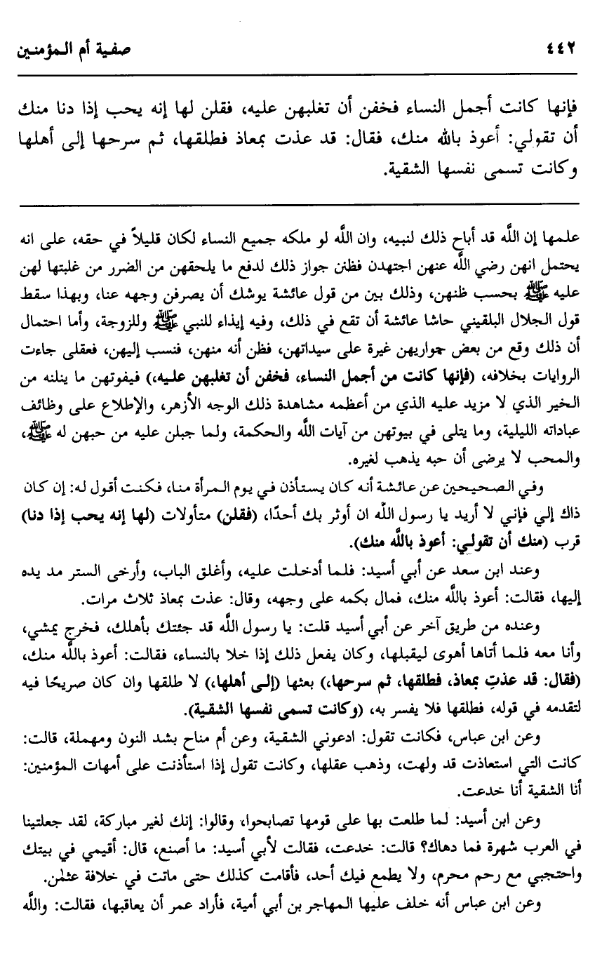 فإنها كانت أجمل النساء فخفن أن تغلبهن عليه، فقلن لها إنه يحب إذا دنا منك أن تقولي: أعوذ بالله منك، فقال: "قد عذت بمعاذ" فطلقها، ثم سرحها إلى أهلها وكانت تسمي نفسها الشقية.
