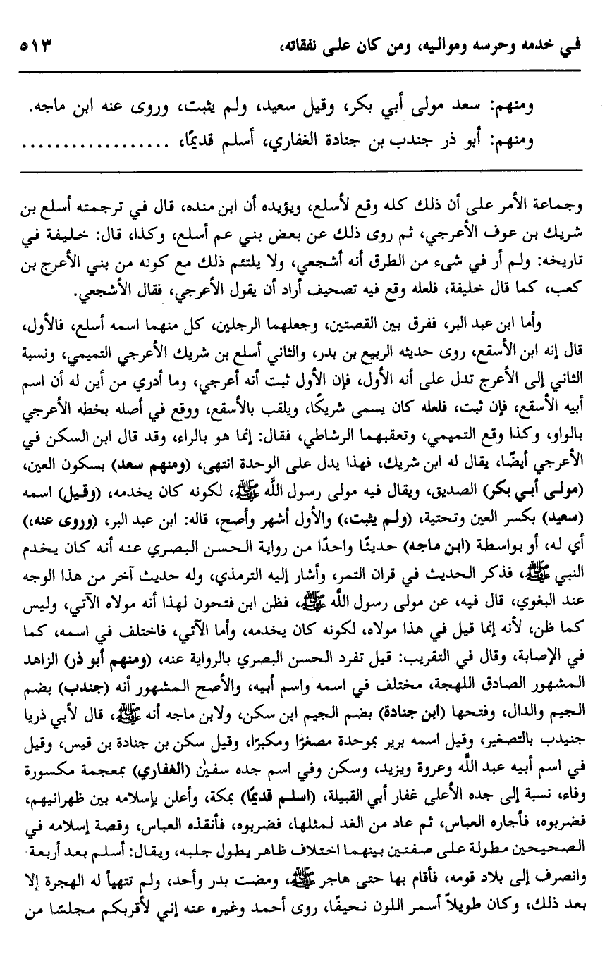ومنهم: سعد مولى أبي بكر، وقيل سعيد، ولم يثبت، وروى عنه ابن ماجه. ومنهم: أبو ذر جندب بن جنادة الغفاري، أسلم قديما،