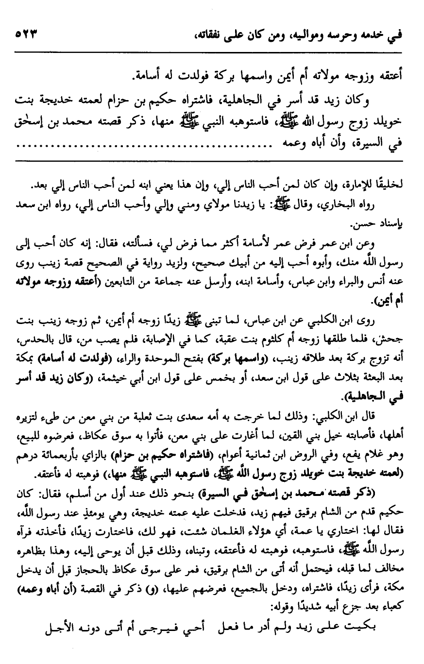 رواه البخاري، وقال صلى الله عليه وسلم: "يا زيدنا مولاي ومني وإلي وأحب الناس إلي"، رواه ابن سعد بإسناد حسن.