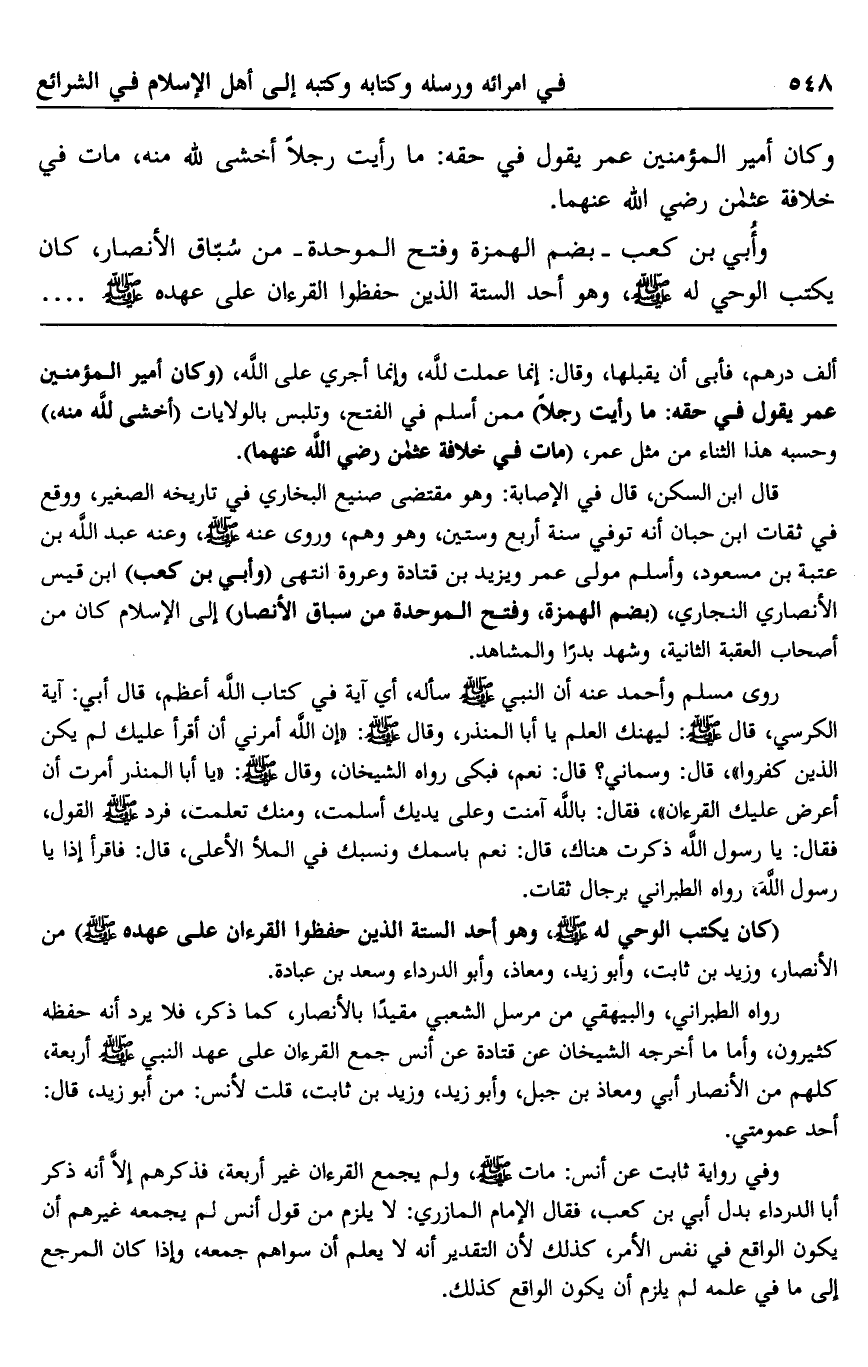 وأبي بن كعب بضم الهمزة وفتح الموخحدة من سباق الأنصار، كان يكتب الوحي له صلى الله عليه وسلم وهو أحد الستة الذين حفظوا القرآن على عهده صلى الله عليه وسلم.....