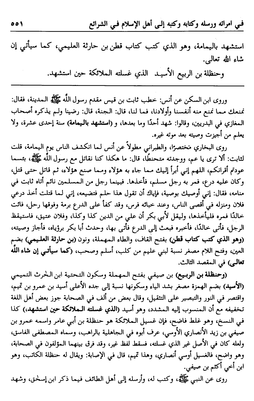 وحنظلة بن الربيع الأسيد الذي غسلته الملائكة حين استشهد.