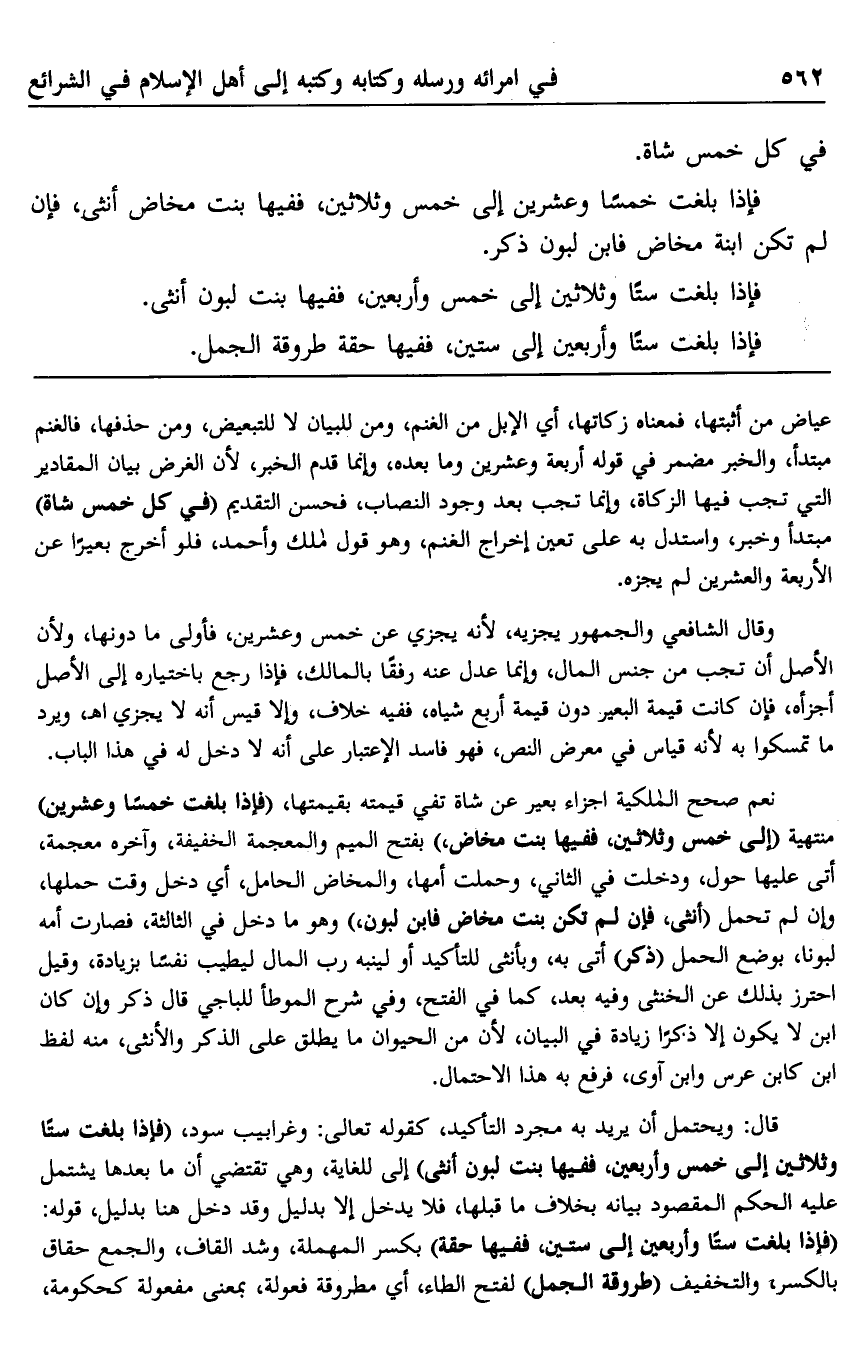 فإذا بلغت ستا وثلاثين إلى خمس وأربعين، ففيها بنت لبون أنثى.
