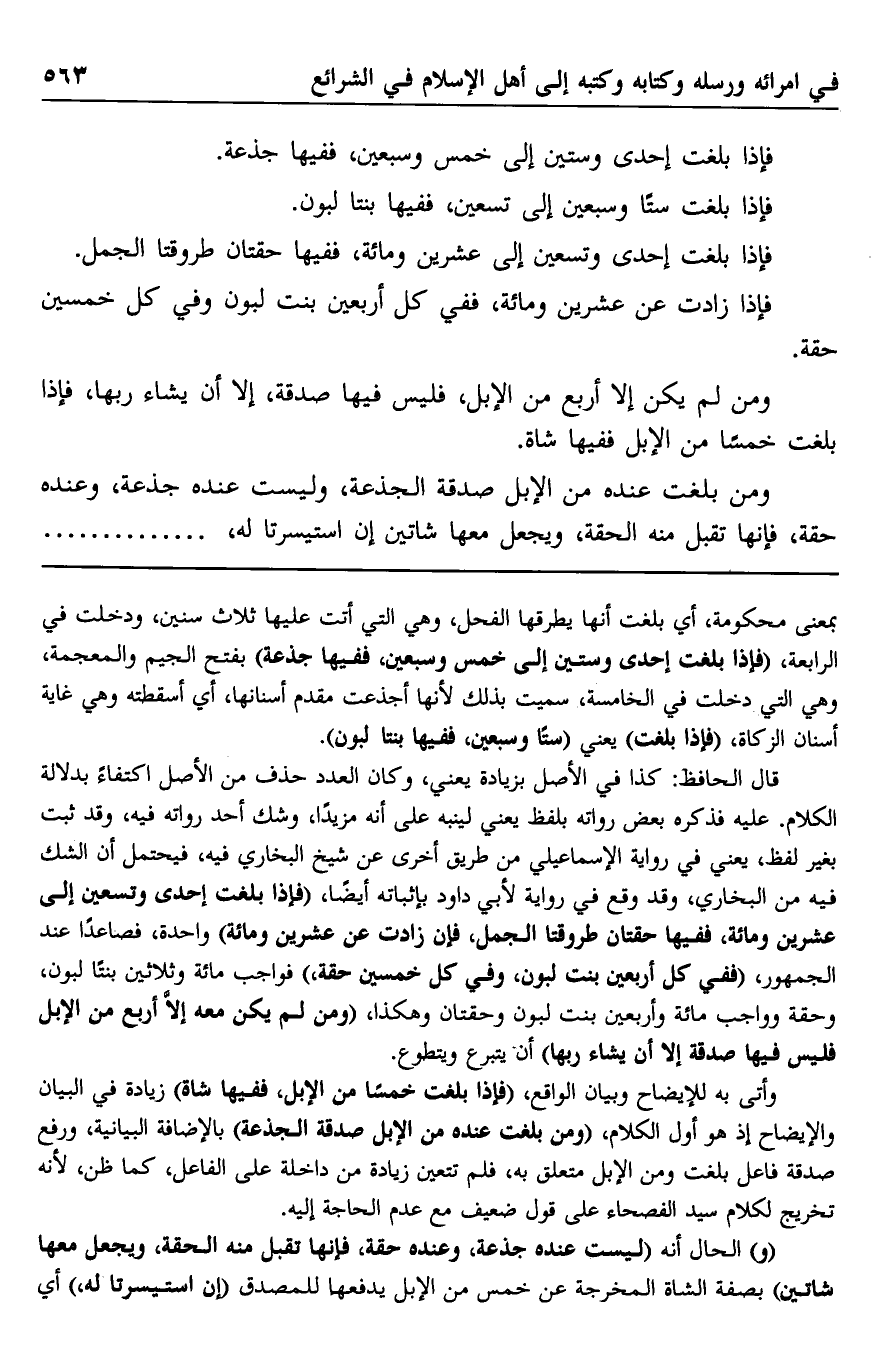 وأتى به للإيضاح وبيان الواقع، "فإذا بلغت خمسا من الإبل، ففيها شاة" زيادة في البيان والإيضاح إذ هو أول الكلام، "ومن بلغت عنده من الإبل صدقة الجذعة"، بالإضافة البيانية، ورفع صدقة فاعل بلغت ومن الإبل متعلق به فلم تتعين زيادة من داخلة على الفاعل، كما ظن لأنه تخريج لكلام سيد الفصحاء على قول ضعيف مع عدم الحاجة إليه.