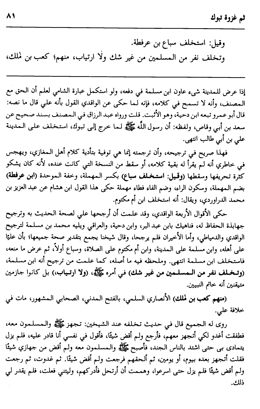 وتخلف نفر من المسلمين من غير شك ولا ارتياب منهم، كعب بن مالك.