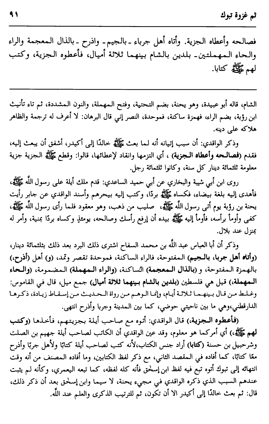 فصالحه وأعطاه الجزية وأتاه أهل جرباء بالجيم -واذرح- بالذال المعجمة والراء والحاء المهملتين بلدين بالشام بينهما ثلاثة أميال، فأعطوه الجزية، وكتب لهم صلى الله عليه وسلم كتابا.