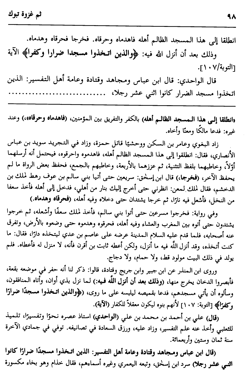 انطلقا إلى هذا المسجد الظالم أهله فاهدماه وحرقاه، فخرجا فحرقاه وهدماه.