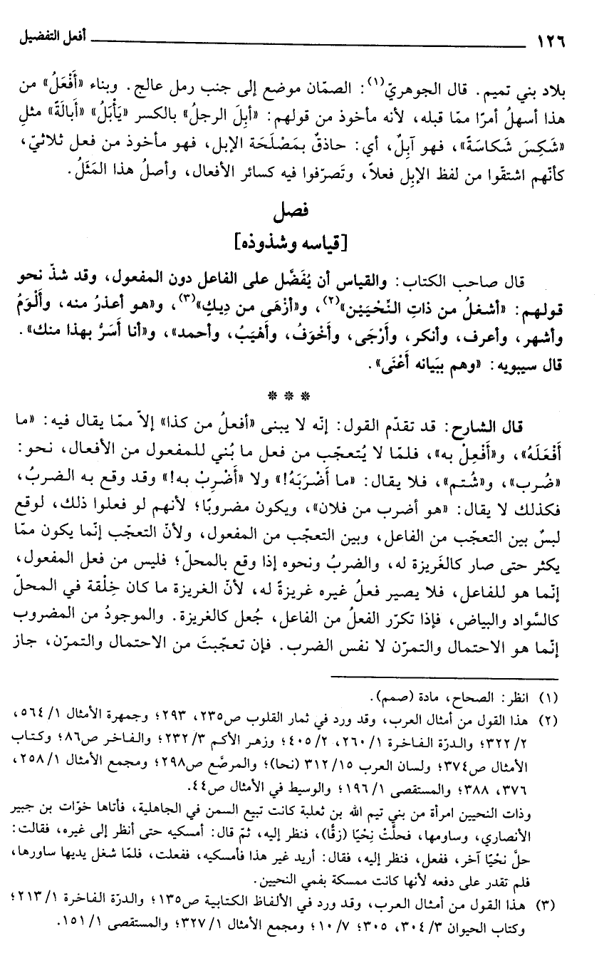 قال صاحب الكتاب: والقياس أن يفضل على الفاعل دون المفعول وقد شذ نحو قولهم أشغل من ذات النحيين (¬2)، وأزهى من ديك (¬3)، وهو أعذر منه وألوم وأشهر وأعرف وأنكر وأرجى وأخوف وأهيب وأحمد، وأنا أسر بهذا منك". قال سيبويه وهم ببيانه أعنى.