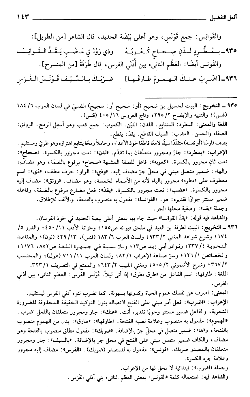 935 - التخريج: البيت لحسيل بن شحيح (أو: سحيح أو: سجيح) الضبيّ في لسان العرب 6/ 184 (قنس)؛ والتنبيه والإيضاح 2/ 295؛ وتاج العروس 16/ 405 (قنس).