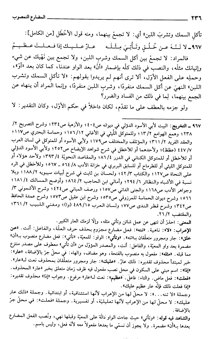 967 - التخريج: البيت لأبي الأسود الدؤلي في ديوانه ص 404؛ والأزهية ص 234؛ وشرح التصريح 2/ 238؛ وهمع الهوامع 2/ 13؛ وللمتوكل الليثي في الأغاني 12/ 156؛ وحماسة البحتري ص 117؛ والعقد الفريد 2/ 311؛ والمؤتلف والمختلف ص 179؛ ولأبي الأسود أو للمتوكل في لسان العرب 7/ 447 (عظظ)؛ ولأحدهما أو للاخطل في شرح شواهد الإيضاح ص 252؛ ولأبي الأسود الدؤلي أو للأخطل أو للمتوكل الكناني في الدرر 4/ 86؛ والمقاصد النحويّة 4/ 393؛ ولأحد هؤلاء أو للمتوكل الليثي أو للطرماح أو للسابق البربري في خزانة الأدب 8/ 564 - 567؛ وللأخطل في الرد على النحاة ص 127؛ والكتاب 3/ 42؛ ولحسان بن ثابت في شرح أبيات سيبويه 2/ 188؛ وبلا نسبة في الأشباه والنظائر 6/ 294؛ وأمالي ابن الحاجب 2/ 864؛ وأوضح المسالك 4/ 181؛ وجواهر الأدب ص 168؛ والجنى الداني ص 157؛ ورصف المباني ص 424؛ وشرح الأشموني 3/ 566؛ وشرح ديوان الحماسة للمرزوقي ص 535؛ وشرح ابن عقيل ص 573؛ وشرح عمدة الحافظ ص 342؛ وشرح قطر الندى ص 77؛ ولسان العرب 15/ 489 (وا)؛ ومغني اللبيب 2/ 361؛ والمقتضب 2/ 26.