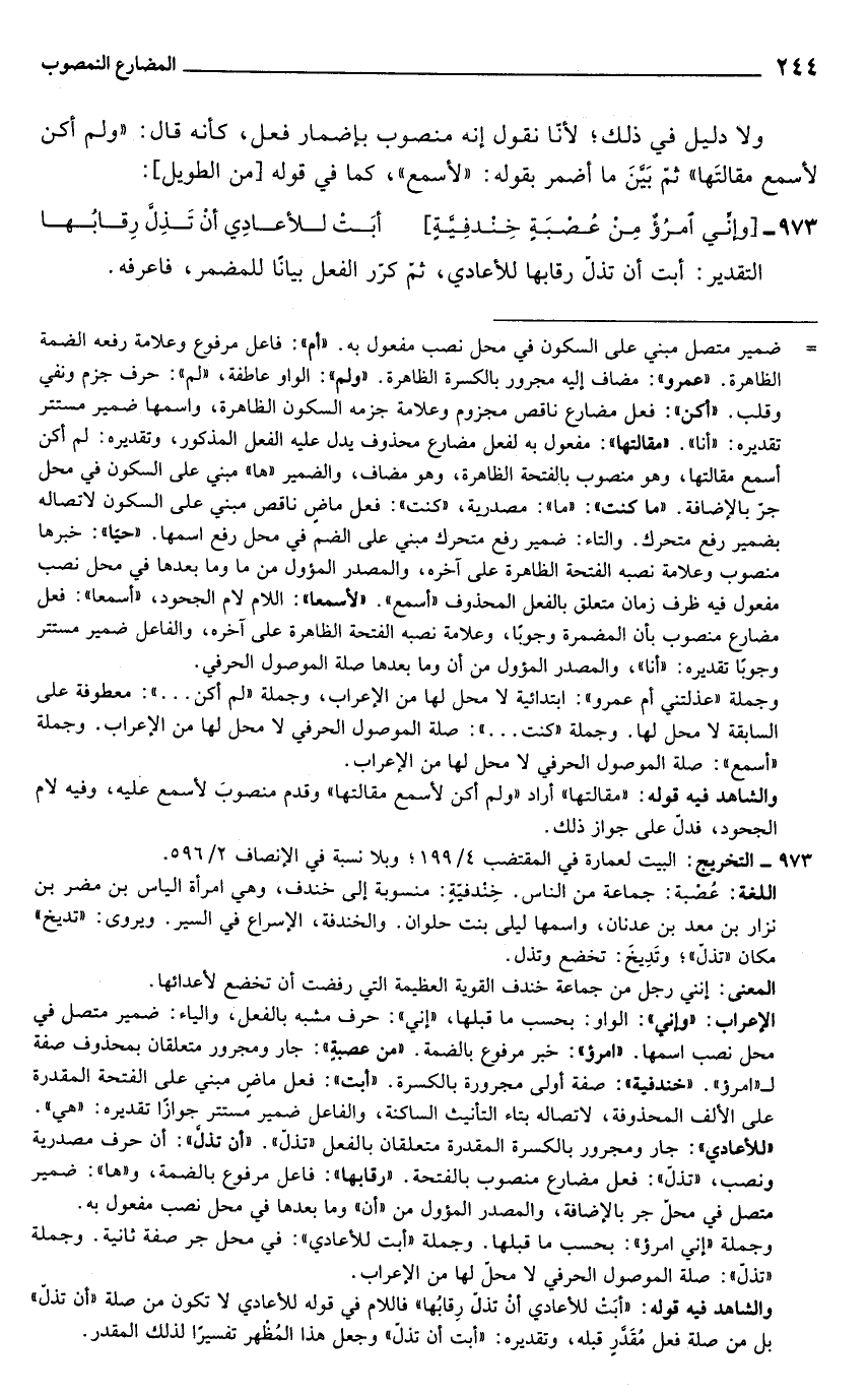 973 - التخريج: البيت لعمارة في المقتضب 4/ 199؛ وبلا نسبة في الإنصاف 2/ 596.