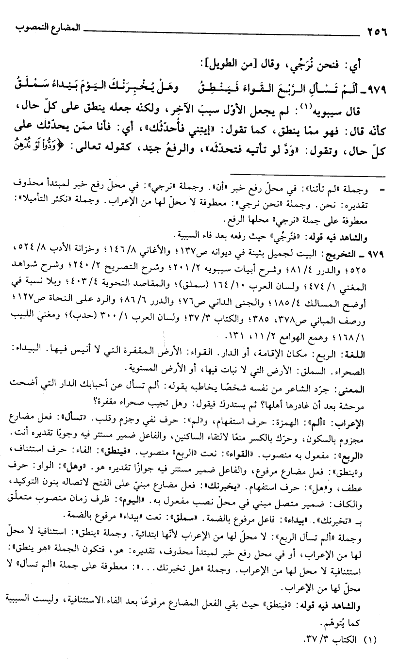 979 - التخريج: البيت لجميل بثينة في ديوانه ص 137؛ والأغاني 8/ 146؛ وخزانة الأدب 8/ 524، 525؛ والدرر 4/ 81؛ وشرح أبيات سيبويه 2/ 201؛ وشرح التصريح 2/ 240؛ وشرح شواهد المغني 1/ 474؛ ولسان العرب 10/ 164 (سملق)؛ والمقاصد النحوية 4/ 403؛ وبلا نسبة في أوضح المسالك 4/ 185؛ والجنى الداني ص 76؛ والدرر 6/ 86؛ والرد على النحاة ص 127؛ ورصف المباني ص 378، 385؛ والكتاب 3/ 37؛ ولسان العرب 1/ 300 (حدب)؛ ومغني اللبيب 1/ 168؛ وهمع الهوامع 2/ 11، 131.
