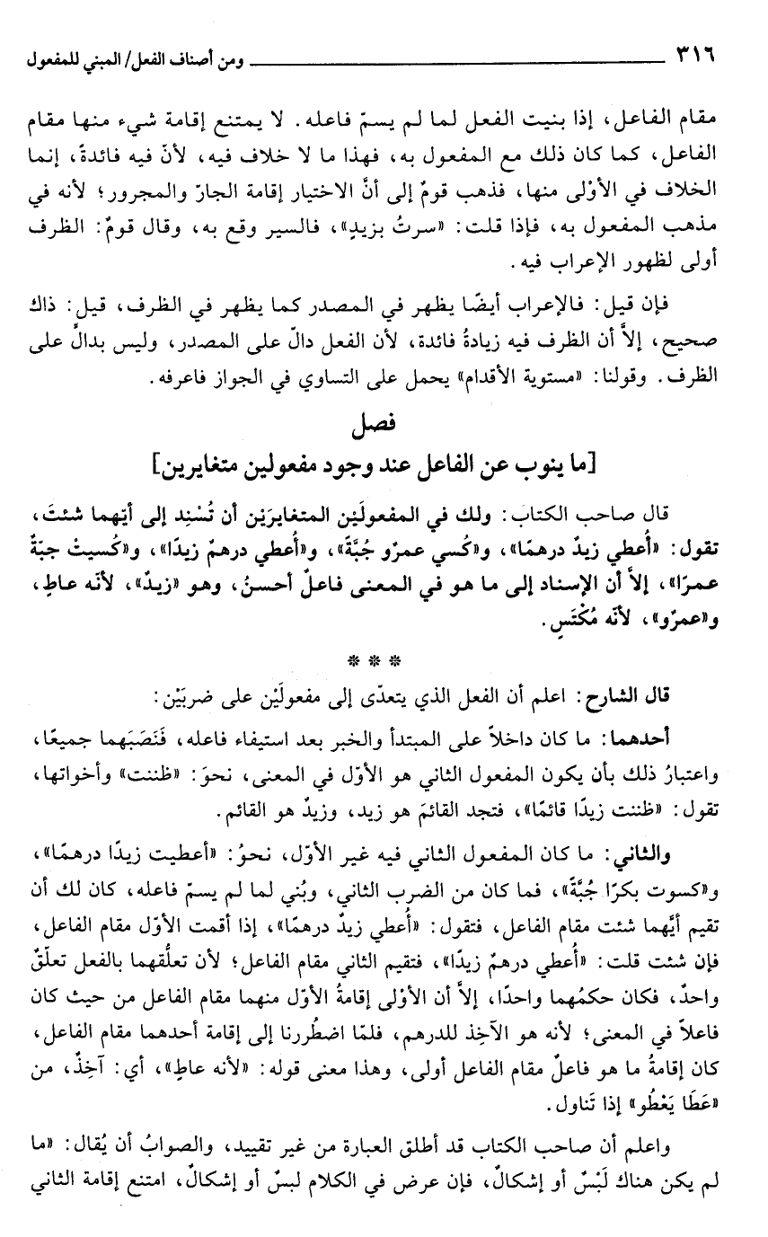 قال الشارح: اعلم أن الفعل الذي يتعدّي إلى مفعولَيْن على ضربَيْن: