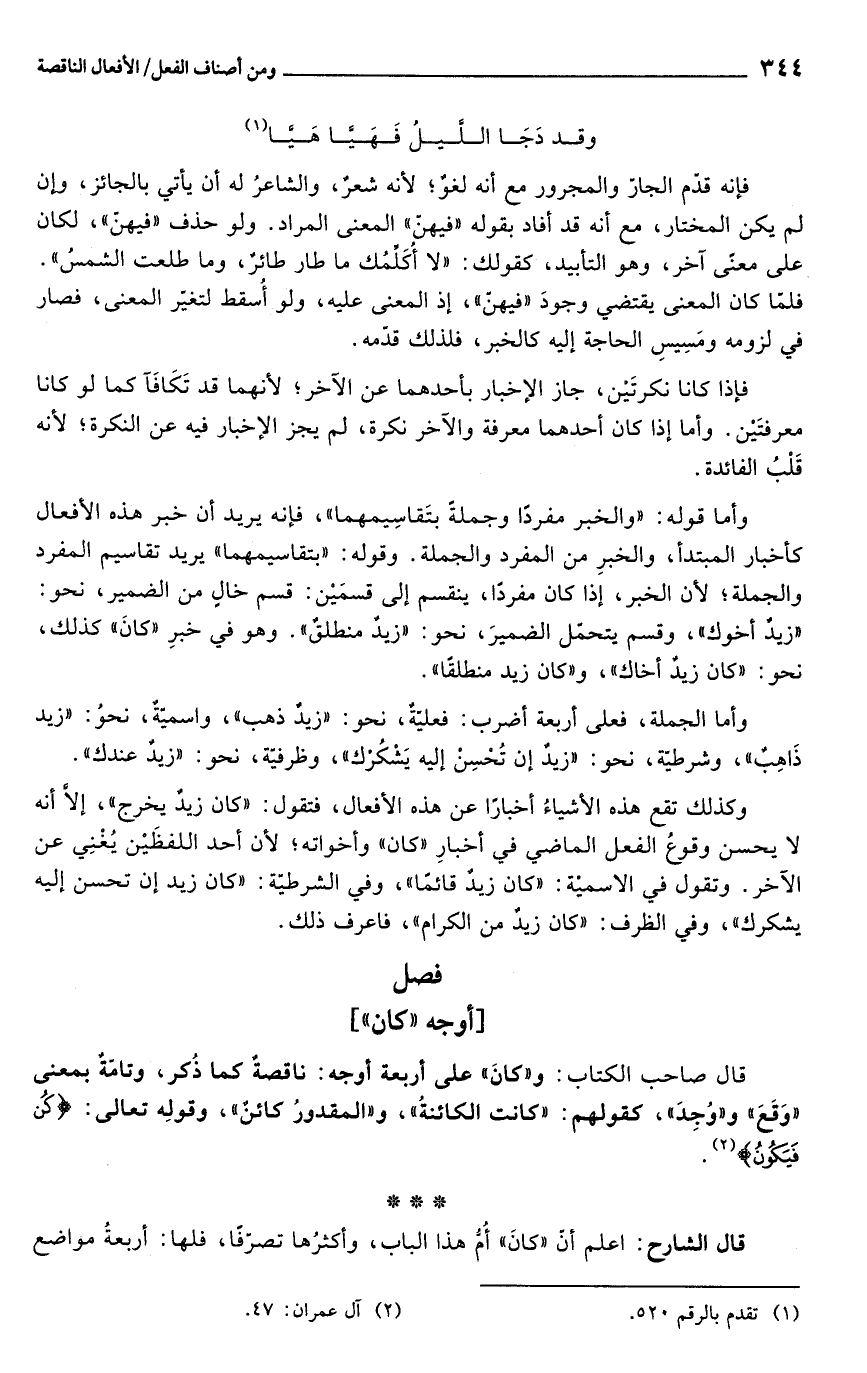 قال الشارح: اعلم أن "كانَ" أُمُّ هذا الباب، وأكثرُها تصرّفًا، فلها: أربعةُ مواضع