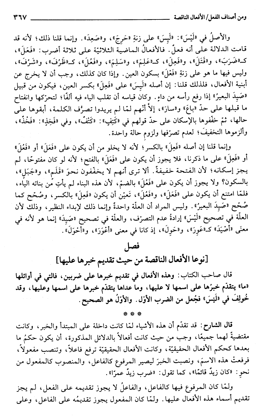 فصل [نوعا الأفعال الناقصة من حيث تقديم خبرها عليها]