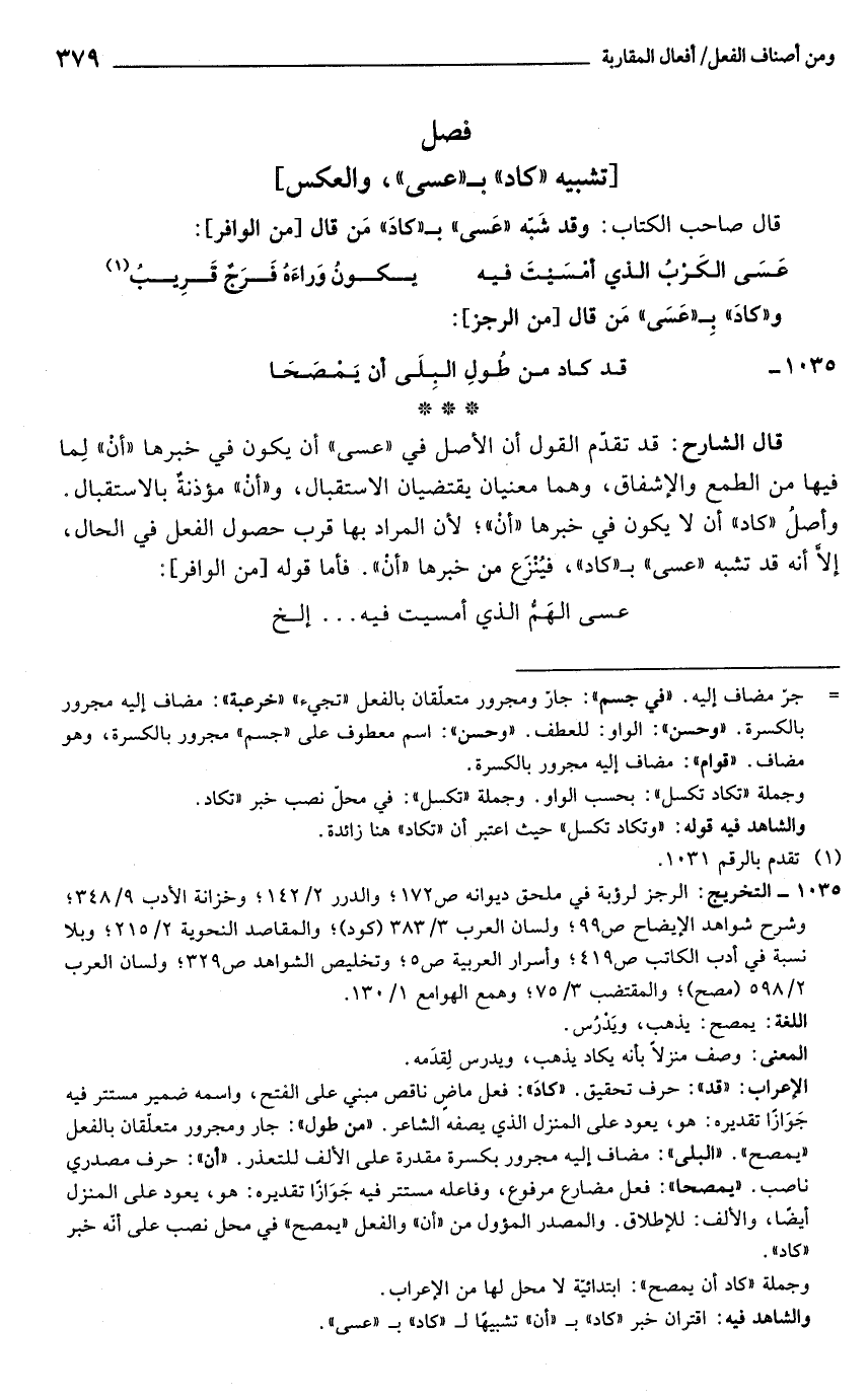 فصل [تشبيه "كاد" بـ "عسي", والعكس]