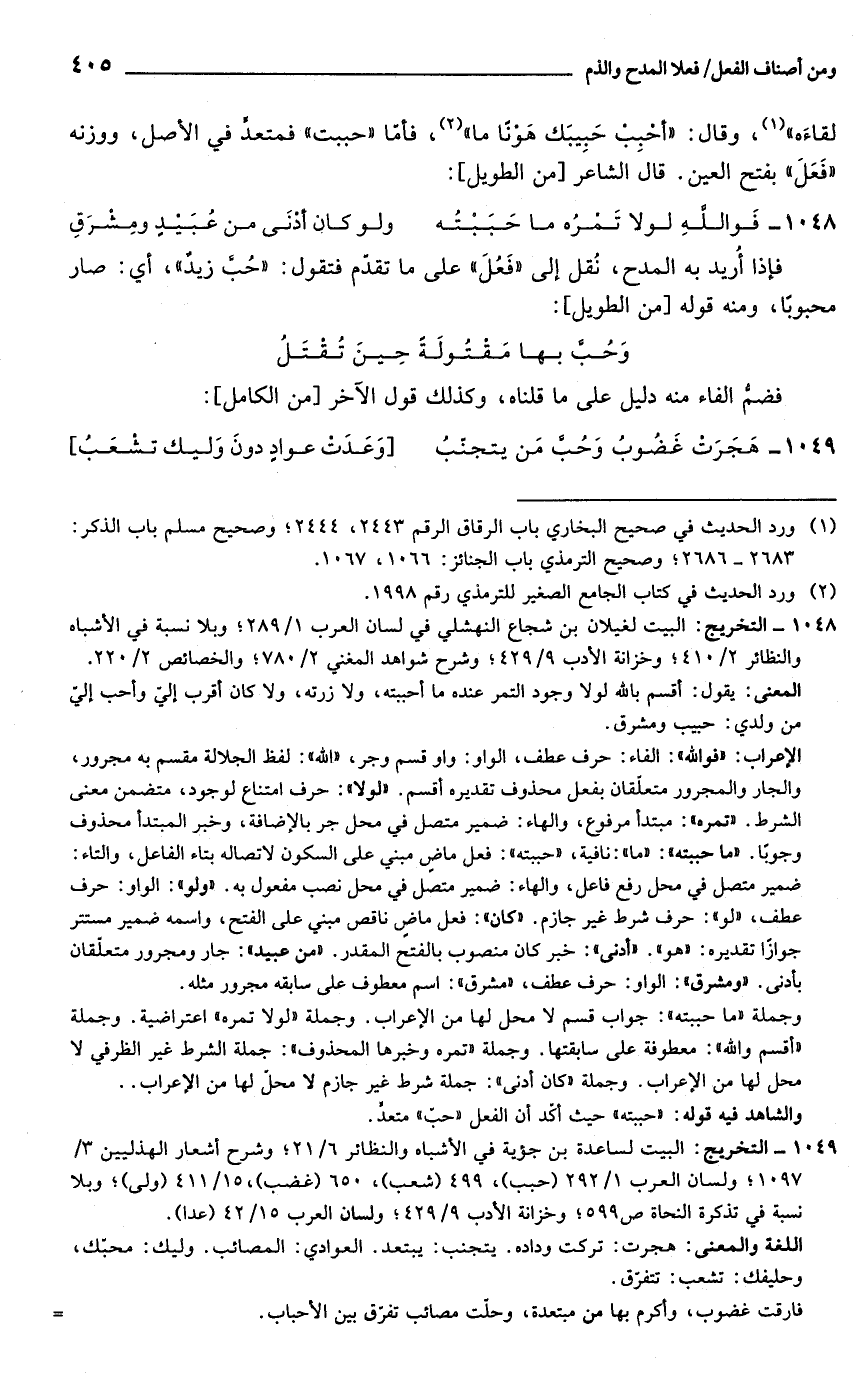 1049 - التخريج: البيت لساعدة بن جؤية في الأشباه والنظانر 6/ 21؛ وشرح أشعار الهذليين 3/ 1097؛ ولسان العرب 1/ 292 (حبب)، 499 (شعب)، 650 (غضب)، 15/ 411 (ولى)؛ وبلا نسبة في تذكرة النحاة ص 599؛ وخزانة الأدب 9/ 429؛ ولسان العرب 15/ 42 (عدا).