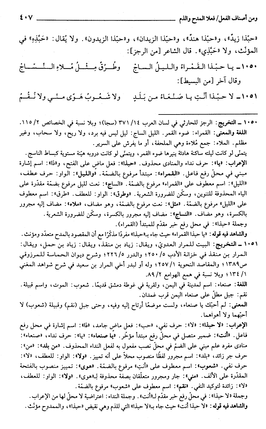 والشاهد فيه قوله: "يا حبذا القمراء" حيث جاء بـ "حبذا" مفردًا مذكّرًا مع أن المقصود بالمدح متعدّد ومؤنث.