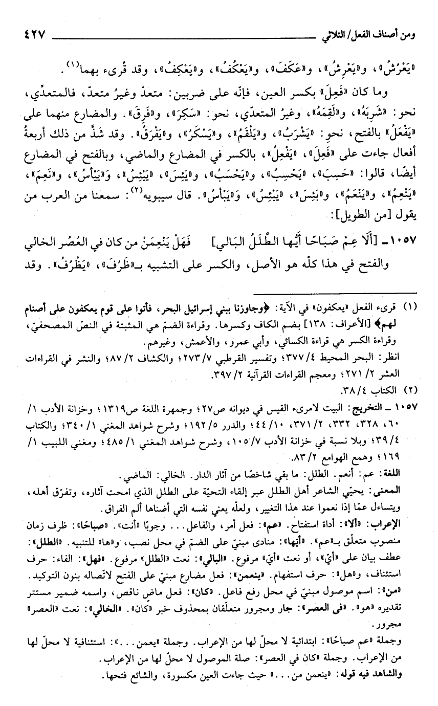 1057 - [ألَا عِمْ صَبَاحًا أَيُّها الطَّلَلُ البَالي] ... فَهَلْ يَنْعِمَنْ من كان في العُصُر الخالي