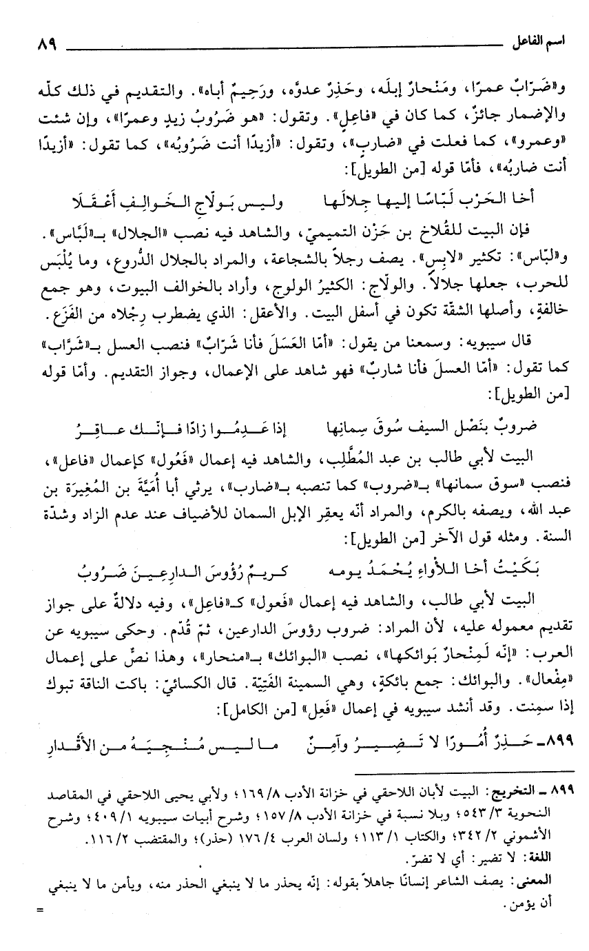 899 - التخريج: البيت لأبان اللاحقي في خزانة الأدب 8/ 169؛ ولأبي يحيي اللاحقي في المقاصد النحوية 3/ 543؛ وبلا نسبة في خزانة الأدب 8/ 157؛ وشرح أبيات سيبويه 1/ 409؛ وشرح الأشموني 2/ 342؛ والكتاب 1/ 113؛ ولسان العرب 4/ 176 (حذر)؛ والمقتضب 2/ 116.