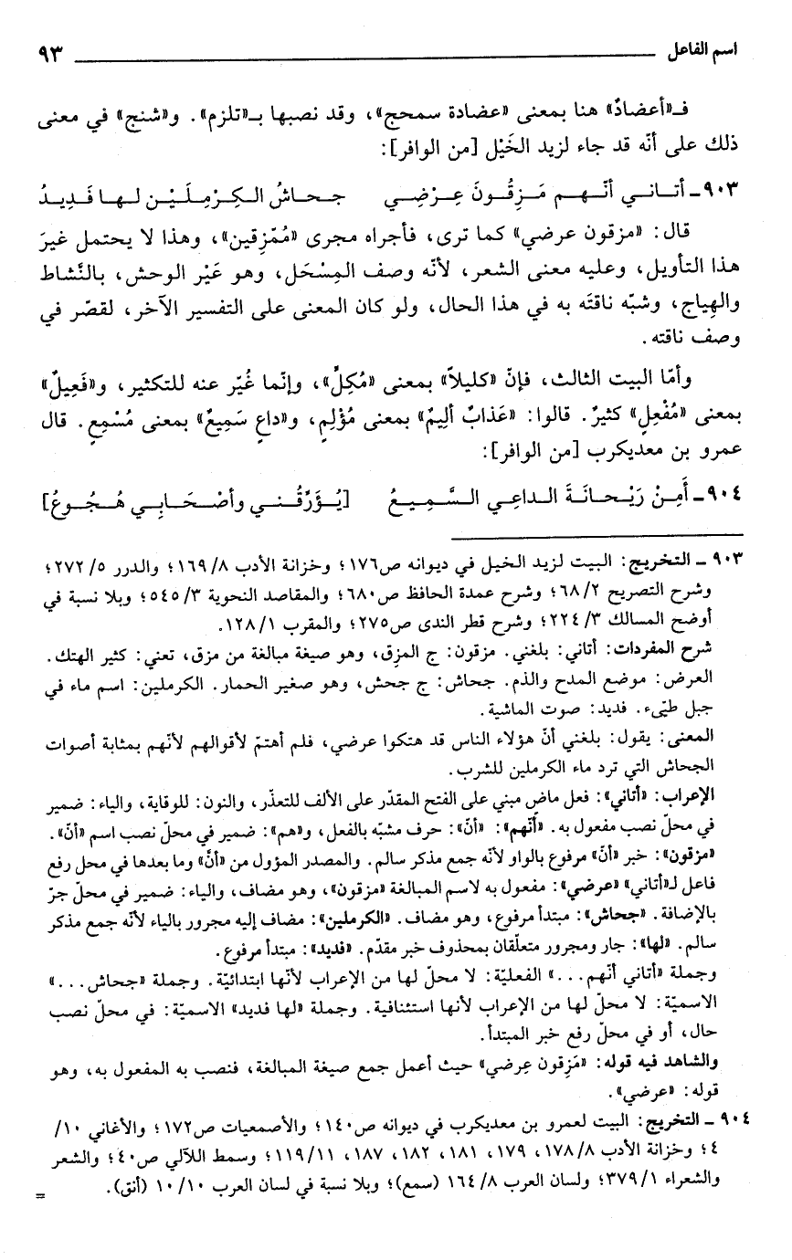 903 - التخريج: البيت لزيد الخيل في ديوانه ص 176؛ وخزانة الأدب 8/ 169؛ والدرر 5/ 272؛ وشرح التصريح 2/ 68؛ وشرح عمدة الحافظ ص680؛ والمقاصد النحوية 3/ 545؛ وبلا نسبة في أوضح المسالك 3/ 224؛ وشرح قطر الندى ص275؛ والمقرب 1/ 128.