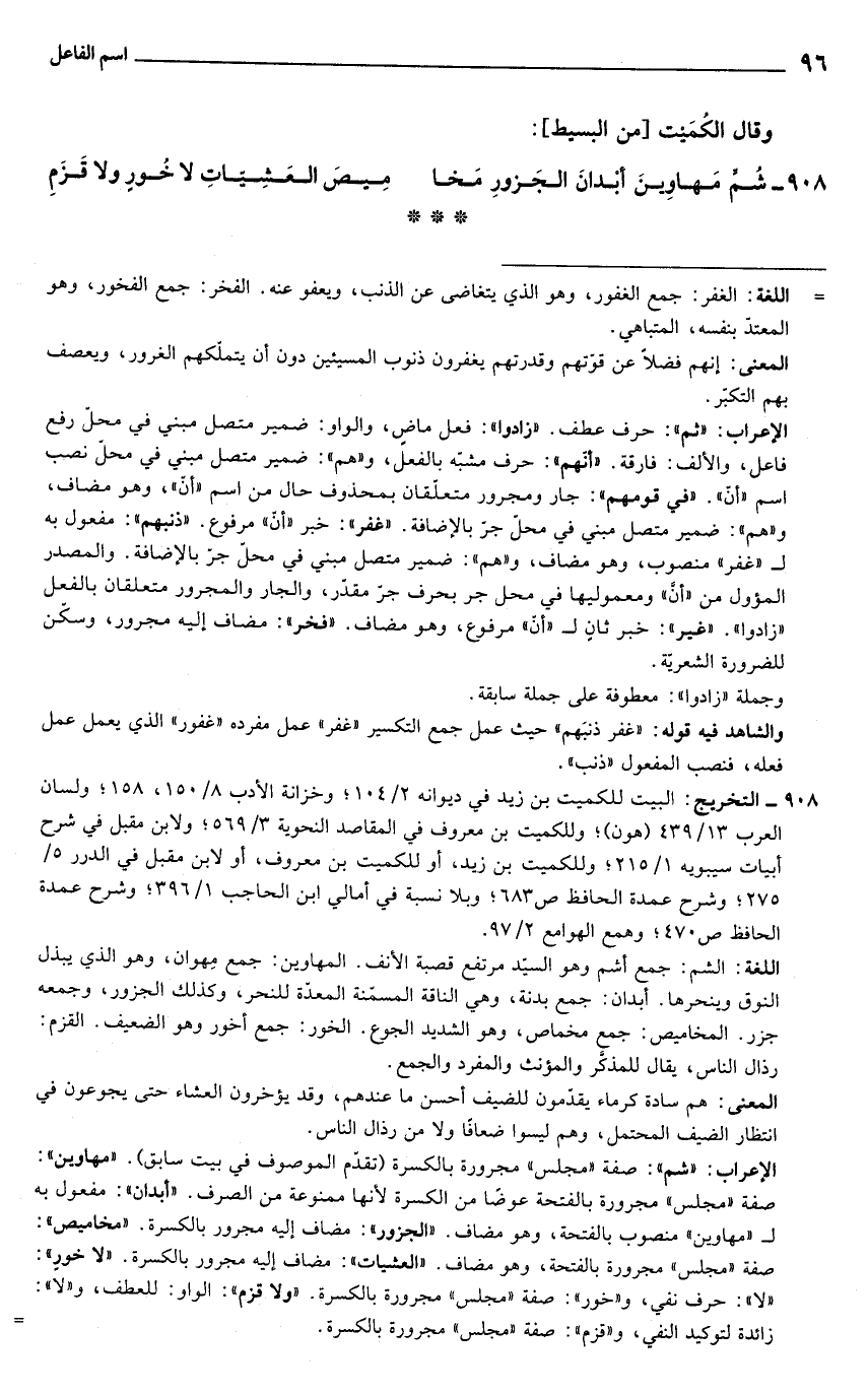 908 - شُمّ مهاوين أبدان الجزور مخا ... ميص العشيات لا خُور ولا قزم