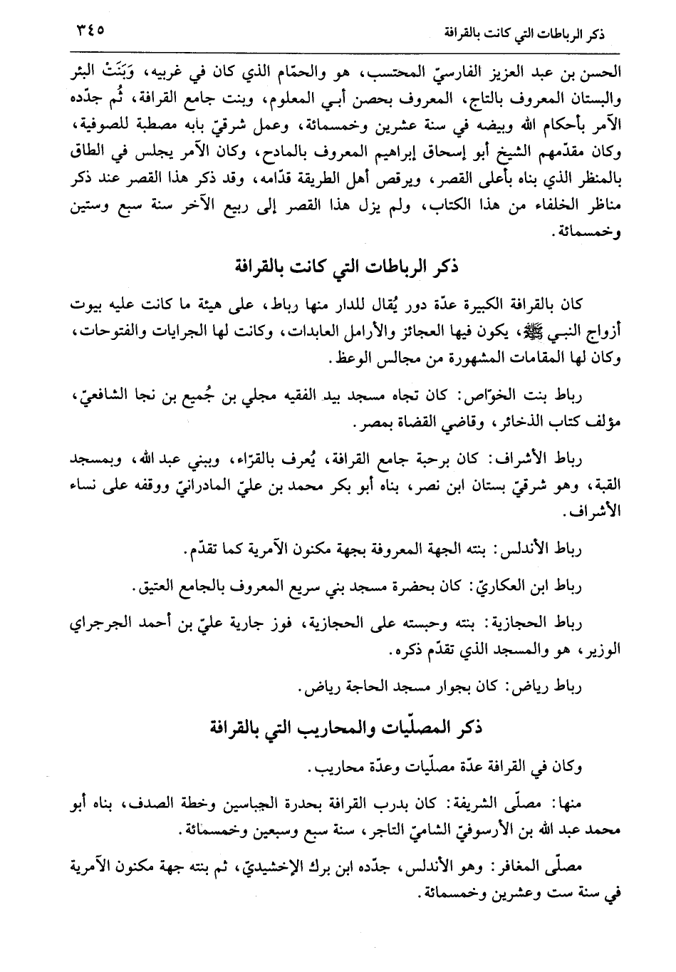 ذكر المصلّيات والمحاريب التي بالقرافة