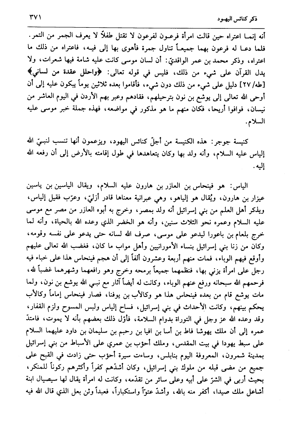 كنيسة جوجر: هذه الكنيسة من أجلّ كنائس اليهود، ويزعمون أنها تنسب لنبيّ الله إلياس عليه السلام، وأنه ولد بها وكان يتعاهدها في طول إقامته بالأرض إلى أن رفعه الله إليه الياس: هو فينحاس بن العازر بن هارون عليه السلام، ويقال الياسين بن ياسين عيزار بن هارون، ويقال هو إلياهو، وهي عبرانية معناها قادر أزليّ، وعرّب فقيل إلياس، ويذكر أهل العلم من بني إسرائيل أنه ولد بمصر، وخرج به أبوه العازر من مصر مع موسى عليه السلام وعمره نحو الثلاث سنين، وأنه هو الخضر الذي وعده الله بالحياة، وأنه لما خرج بلعام بن باعورا ليدعو على موسى، صرف الله لسانه حتى يدعو على نفسه وقومه، وكان من زنا بني إسرائيل بنساء الأمورانيين وأهل مواب ما كان، فغضب الله تعالى عليهم وأوقع فيهم الوباء، فمات منهم أربعة وعشرون ألفا إلى أن هجم فينحاس هذا على خباء فيه رجل على امرأة يزني بها، فنظمهما جميعا برمحه وخرج وهو رافعهما وشهرهما غضبا لله، فرحمهم الله سبحانه ورفع عنهم الوباء، وكانت له أيضا آثار مع نبي الله يوشع بن نون، ولما مات يوشع قام من بعده فينحاس هذا هو وكالأب بن يوفنا، فصار فينحاس إماما وكالأب يحكم بينهم، وكانت الأحداث في بني إسرائيل، فساح إلياس ولبس المسوح ولزم القفار، وقد وعده الله عز وجل في التوراة بدوام السلامة، فأوّل ذلك بعضهم بأنه لا يموت، فامتدّ عمره إلى أن ملك يهوشا فاط بن أسا بن افيا بن رحبم بن سليمان بن داود عليهما السلام على سبط يهودا في بيت المقدس، وملك أحؤب بن عمري على الأسباط من بني إسرائيل بمدينة شمرون، المعروفة اليوم بنابلس، وساءت سيرة أحؤب حتى زادت في القبح على جميع من مضى قبله من ملوك بني إسرائيل، وكان أشدّهم كفرا وأكثرهم ركونا للمنكر، بحيث أربى في الشرّ على أبيه وعلى سائر من تقدّمه، وكانت له امرأة يقال لها سيصيال ابنة أشاعل ملك صيدا، أكفر منه بالله، وأشدّ عتوّا واستكبارا، فعبدا وثن بعل الذي قال الله فيه