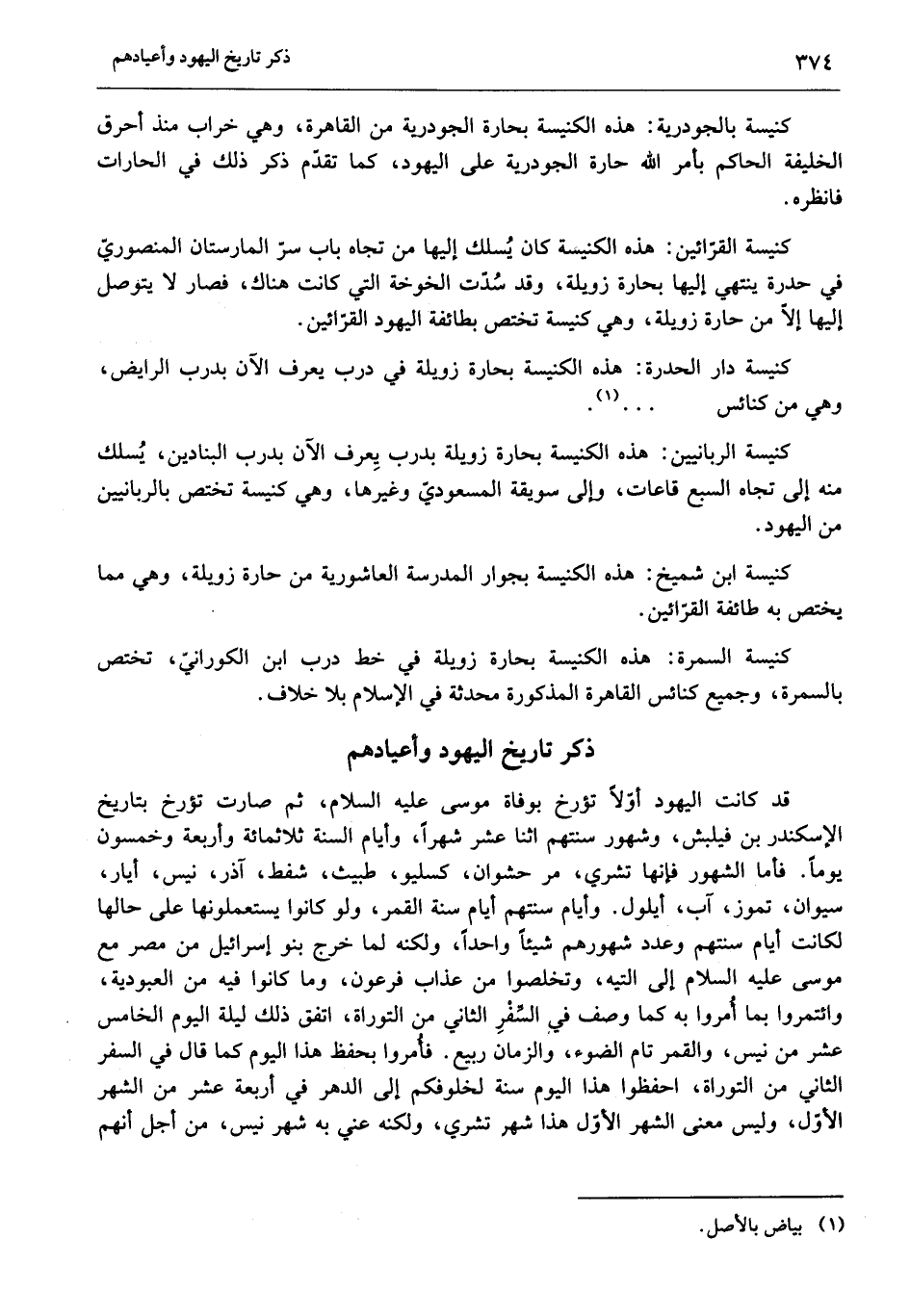 ذكر تاريخ اليهود وأعيادهم