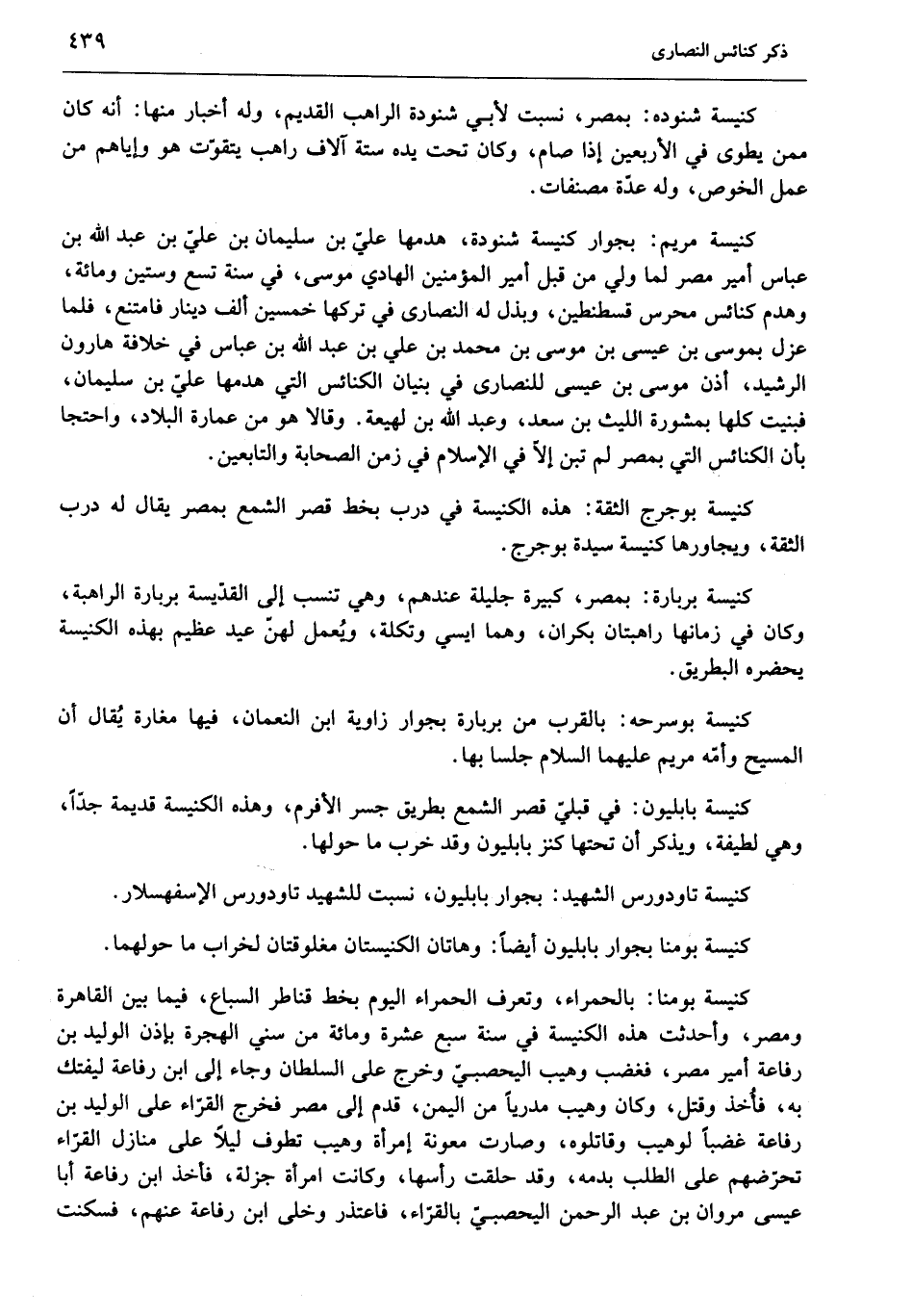 كنيسة بابليون: في قبليّ قصر الشمع بطريق جسر الأفرم، وهذه الكنيسة قديمة جدّا، وهي لطيفة، ويذكر أن تحتها كنز بابليون وقد خرب ما حولها.