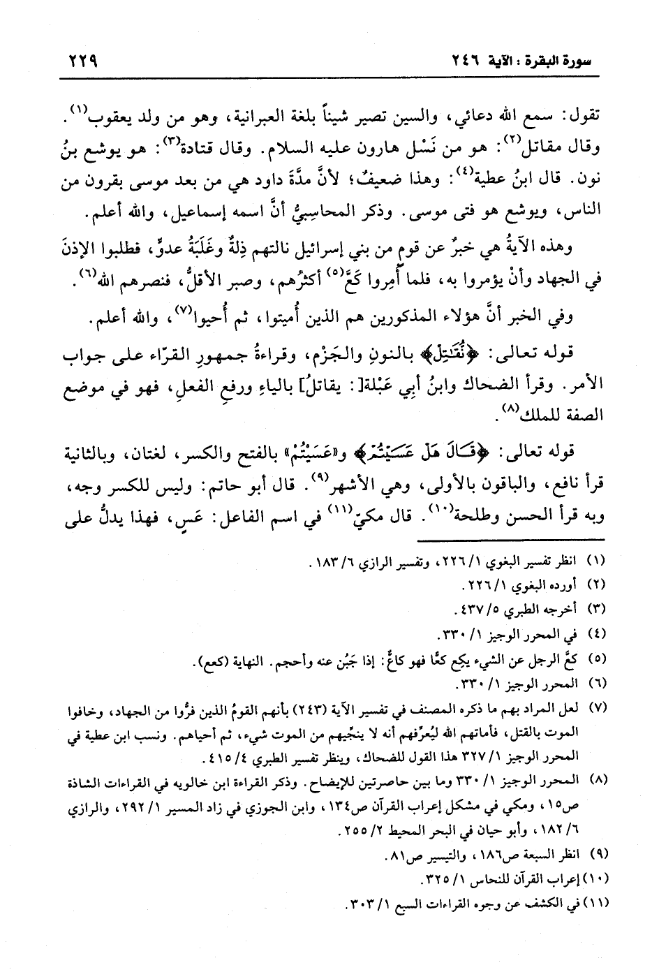 قَالَ النَّحَّاسُ: وَوَقَفَ أَبُو عَمْرٍو" وَكَأَيْ" بِغَيْرِ نُونٍ، لِأَنَّهُ تنوين. وروى ذلك سورة ابن الْمُبَارَكِ عَنِ الْكِسَائِيِّ. وَوَقَفَ الْبَاقُونَ بِالنُّونِ اتِّبَاعًا لِخَطِ الْمُصْحَفِ. وَمَعْنَى الْآيَةِ تَشْجِيعُ الْمُؤْمِنِينَ، وَالْأَمْرُ بِالِاقْتِدَاءِ بِمَنْ تَقَدَّمَ مِنْ خِيَارِ أَتْبَاعِ الْأَنْبِيَاءِ، أَيْ كَثِيرٌ مِنَ الْأَنْبِيَاءِ قُتِلَ مَعَهُ رِبِّيُّونَ كثير، أو كثير من الأنبياء قالوا فَمَا ارْتَدَّ أُمَمُهُمْ، قَوْلَانِ: الْأَوَّلُ لِلْحَسَنِ وَسَعِيدِ بْنِ جُبَيْرٍ. قَالَ الْحَسَنُ: مَا قُتِلَ نَبِيٌّ فِي حَرْبٍ قَطُّ. وَقَالَ ابْنُ جُبَيْرٍ: مَا سَمِعْنَا أَنَّ نَبِيًّا قُتِلَ فِي الْقِتَالِ. وَالثَّانِي عَنْ قَتَادَةَ وَعِكْرِمَةَ. وَالْوَقْفُ- عَلَى هَذَا الْقَوْلِ- عَلَى" قُتِلَ" جَائِزٌ، وَهِيَ قِرَاءَةُ نَافِعٍ وَابْنِ جُبَيْرٍ وَأَبِي عَمْرٍو وَيَعْقُوبَ. وَهِيَ قِرَاءَةُ ابْنِ عَبَّاسٍ وَاخْتَارَهَا أَبُو حَاتِمٍ. وَفِيهِ وَجْهَانِ: أَحَدُهُمَا أَنْ يَكُونَ" قُتِلَ" وَاقِعًا عَلَى النَّبِيِّ وَحْدَهُ، وَحِينَئِذٍ يَكُونُ تَمَامُ الْكَلَامِ عِنْدَ قَوْلِهِ" قُتِلَ" وَيَكُونُ فِي الْكَلَامِ إِضْمَارٌ، أَيْ وَمَعَهُ رِبِّيُّونَ كَثِيرٌ، كَمَا يُقَالُ: قُتِلَ الْأَمِيرُ مَعَهُ جَيْشٌ عَظِيمٌ، أَيْ وَمَعَهُ جَيْشٌ. وَخَرَجْتُ مَعِي تِجَارَةٌ، أَيْ وَمَعِي. الْوَجْهُ الثَّانِي أَنْ يَكُونَ الْقَتْلُ نَالَ النَّبِيَّ وَمَنْ مَعَهُ مِنَ الرِّبِّيِّينَ، وَيَكُونَ وَجْهُ الْكَلَامِ قُتِلَ بَعْضُ مَنْ كَانَ مَعَهُ، تَقُولُ الْعَرَبُ: قَتَلْنَا بَنِي تَمِيمٍ وَبَنِي سَلِيمٍ، وَإِنَّمَا قَتَلُوا بَعْضَهُمْ. وَيَكُونُ قَوْلُهُ" فَما وَهَنُوا" رَاجِعًا إِلَى مَنْ بَقِيَ مِنْهُمْ. قُلْتُ: وَهَذَا الْقَوْلُ أَشْبَهُ بِنُزُولِ الْآيَةِ وَأَنْسَبُ، فَإِنَّ النَّبِيَّ صَلَّى اللَّهُ عَلَيْهِ وَسَلَّمَ لَمْ يُقْتَلْ، وَقُتِلَ مَعَهُ جَمَاعَةٌ مِنْ أَصْحَابِهِ. وَقَرَأَ الْكُوفِيُّونَ وَابْنُ عامر" قاتَلَ" وهي قراءة