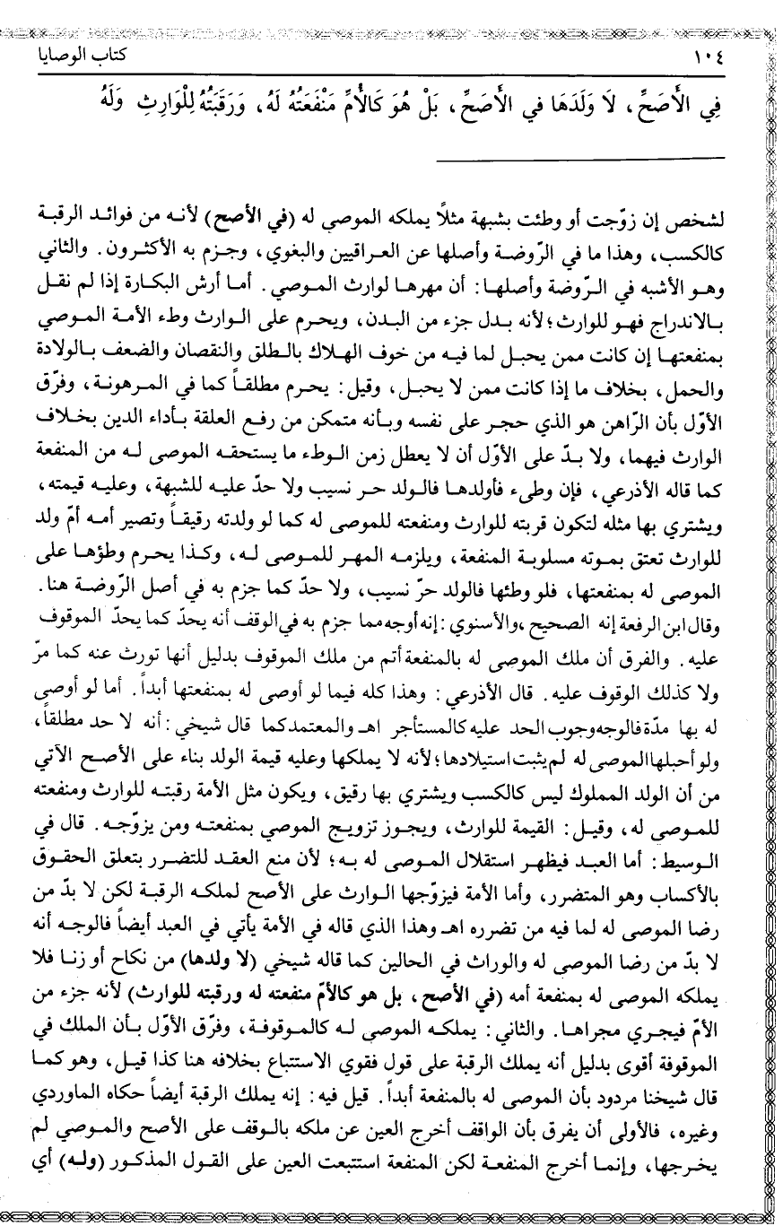 ـــــــــــــــــــــــــــــQلِشَخْصٍ إنْ زُوِّجَتْ أَوْ وُطِئَتْ بِشُبْهَةٍ مَثَلًا يَمْلِكُهُ الْمُوصَى لَهُ (فِي الْأَصَحِّ) لِأَنَّهُ مِنْ فَوَائِدِ الرَّقَبَةِ كَالْكَسْبِ، وَهَذَا مَا فِي الرَّوْضَةِ وَأَصْلِهَا عَنْ الْعِرَاقِيِّينَ وَالْبَغَوِيِّ، وَجَزَمَ بِهِ الْأَكْثَرُونَ.