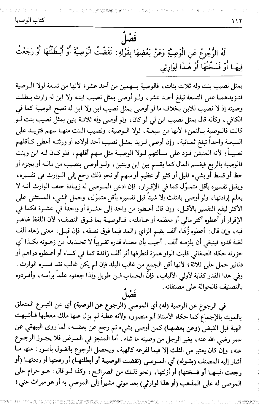 فَصْلٌ لَهُ الرُّجُوعُ عَنْ الْوَصِيَّةِ وَعَنْ بَعْضِهَا بِقَوْلِهِ: نَقَضْتُ الْوَصِيَّةَ أَوْ أَبْطَلْتهَا أَوْ رَجَعْتُ فِيهَا أَوْ فَسَخْتُهَا أَوْ هَذَا لِوَارِثِي.