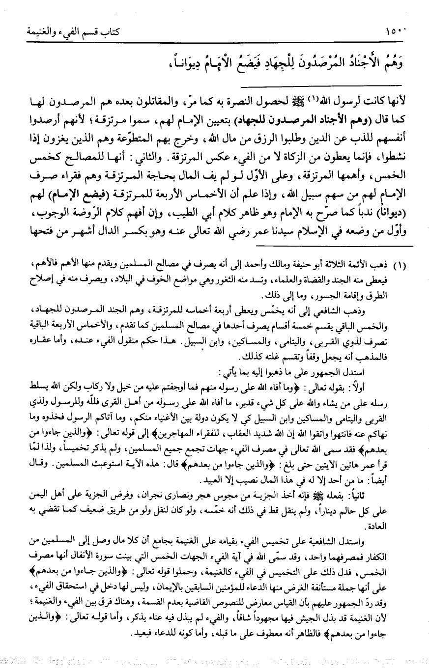 ـــــــــــــــــــــــــــــQلِأَنَّهَا كَانَتْ لِرَسُولِ اللَّهِ - صَلَّى اللَّهُ عَلَيْهِ وَسَلَّمَ - لِحُصُولِ النُّصْرَةِ بِهِ كَمَا مَرَّ، وَالْمُقَاتِلُونَ بَعْدَهُ هُمْ الْمُرْصَدُونَ لَهَا كَمَا قَالَ (وَهُمْ الْأَجْنَادُ الْمُرْصَدُونَ لِلْجِهَادِ) بِتَعْيِينِ الْإِمَامِ لَهُمْ، سُمُّوا مُرْتَزِقَةً؛ لِأَنَّهُمْ أَرْصَدُوا أَنْفُسَهُمْ لِلذَّبِّ عَنْ الدِّينِ وَطَلَبُوا الرِّزْقَ مِنْ مَالِ اللَّهِ، وَخَرَجَ بِهِمْ الْمُتَطَوِّعَةُ وَهُمْ الَّذِينَ يَغْزُونَ إذَا نَشَطُوا، فَإِنَّمَا يُعْطَوْنَ مِنْ الزَّكَاةِ لَا مِنْ الْفَيْءِ عَكْسُ الْمُرْتَزِقَةِ. وَالثَّانِي: أَنَّهَا لِلْمَصَالِحِ كَخُمْسِ الْخُمْسِ، وَأَهَمُّهَا الْمُرْتَزِقَةُ، وَعَلَى الْأَوَّلِ لَوْ لَمْ يَفِ الْمَالُ بِحَاجَةِ الْمُرْتَزِقَةِ وَهُمْ فُقَرَاءُ صَرَفَ الْإِمَامُ لَهُمْ مِنْ سَهْمِ سَبِيلِ اللَّهِ.