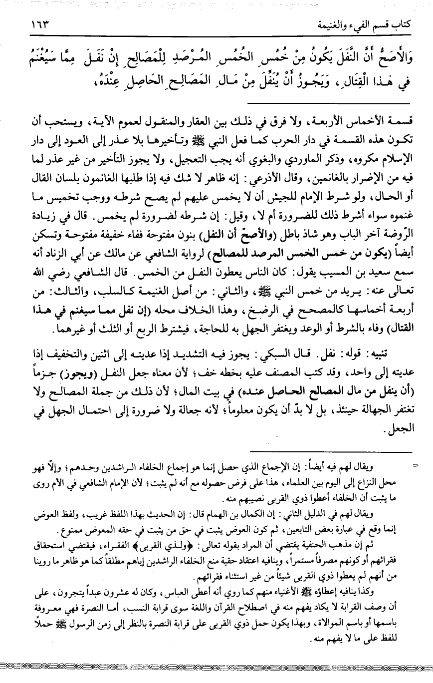 تَنْبِيهٌ قَوْلُهُ: نَفْلٌ. قَالَ السُّبْكِيُّ: يَجُوزُ فِيهِ التَّشْدِيدُ إذَا عَدَّيْتُهُ إلَى اثْنَيْنِ وَالتَّخْفِيفُ إذَا عَدَّيْتُهُ إلَى وَاحِدٍ، وَقَدْ كَتَبَ الْمُصَنِّفُ عَلَيْهِ بِخَطِّهِ خَفَّ؛ لِأَنَّ مَعْنَاهُ جَعَلَ النَّفَلَ (وَيَجُوزُ) جَزْمًا (أَنْ يُنَفِّلَ مِنْ مَالِ الْمَصَالِحِ الْحَاصِلِ عِنْدَهُ) فِي بَيْتِ الْمَالِ؛ لِأَنَّ ذَلِكَ مِنْ جُمْلَةِ الْمَصَالِحِ وَلَا تُغْتَفَرُ الْجَهَالَةُ حِينَئِذٍ، بَلْ لَا بُدَّ أَنْ يَكُونَ مَعْلُومًا؛ لِأَنَّهُ جَعَالَةٌ وَلَا ضَرُورَةَ إلَى احْتِمَالِ الْجَهْلِ فِي الْجُعْلِ.