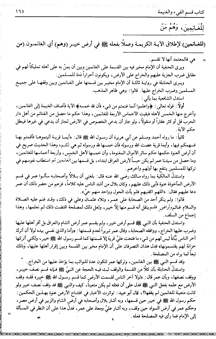 ـــــــــــــــــــــــــــــQ (لِلْغَانِمِينَ) لِإِطْلَاقِ الْآيَةِ الْكَرِيمَةِ وَعَمَلًا بِفِعْلِهِ - صَلَّى اللَّهُ عَلَيْهِ وَسَلَّمَ - فِي أَرْضِ خَيْبَرَ.