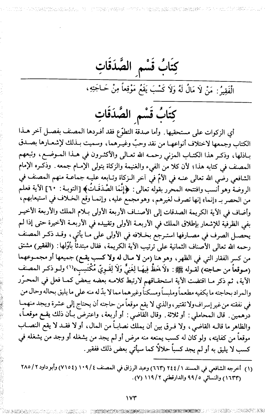 كِتَابُ قَسْمِ الصَّدَقَاتِ الْفَقِيرُ مَنْ لَا مَالَ لَهُ وَلَا كَسْبَ يَقَعُ مَوْقِعًا مِنْ حَاجَتِهِ،