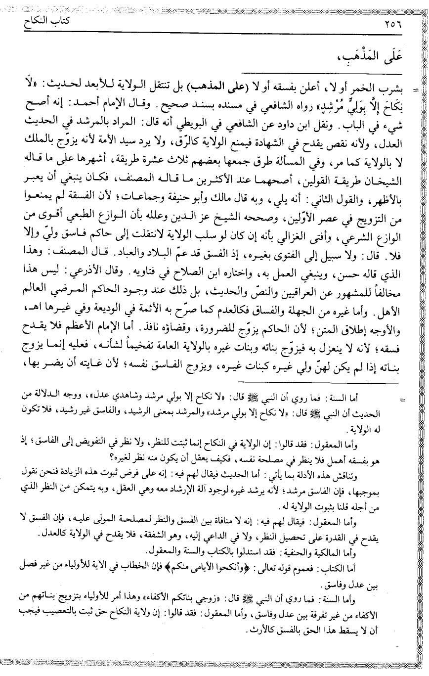ـــــــــــــــــــــــــــــQبِشُرْبِ الْخَمْرِ أَوْ لَا، أَعْلَنَ بِفِسْقِهِ أَوْ لَا (عَلَى الْمَذْهَبِ) بَلْ تَنْتَقِلُ الْوِلَايَةُ لِلْأَبْعَدِ لِحَدِيثِ: «لَا نِكَاحَ إلَّا بِوَلِيٍّ مُرْشِدٍ» رَوَاهُ الشَّافِعِيُّ فِي مُسْنَدِهِ بِسَنَدٍ صَحِيحٍ. وَقَالَ الْإِمَامُ أَحْمَدُ: إنَّهُ أَصَحُّ شَيْءٍ فِي الْبَابِ. وَنَقَلَ ابْنُ دَاوُد عَنْ الشَّافِعِيِّ فِي الْبُوَيْطِيِّ أَنَّهُ قَالَ: الْمُرَادُ بِالْمُرْشِدِ فِي الْحَدِيثِ الْعَدْلُ، وَلِأَنَّهُ نَقْصٌ يَقْدَحُ فِي الشَّهَادَةِ فَيَمْنَعُ الْوِلَايَةَ كَالرِّقِّ، وَلَا يُرَدُّ سَيِّدُ الْأَمَةِ لِأَنَّهُ يُزَوِّجُ بِالْمِلْكِ لَا بِالْوِلَايَةِ كَمَا مَرَّ، وَفِي الْمَسْأَلَةِ طُرُقٌ جَمَعَهَا بَعْضُهُمْ ثَلَاثَ عَشْرَةَ طَرِيقَةً، أَشْهَرُهَا عَلَى مَا قَالَهُ الشَّيْخَانِ طَرِيقَةُ الْقَوْلَيْنِ، أَصَحُّهُمَا عِنْدَ الْأَكْثَرِينَ مَا قَالَهُ الْمُصَنِّفُ، فَكَانَ يَنْبَغِي أَنْ يُعَبِّرَ بِالْأَظْهَرِ، وَالْقَوْلُ الثَّانِي: أَنَّهُ يَلِي، وَبِهِ قَالَ مَالِكٌ وَأَبُو حَنِيفَةَ وَجَمَاعَاتٌ؛ لِأَنَّ الْفَسَقَةَ لَمْ يُمْنَعُوا مِنْ التَّزْوِيجِ فِي عَصْرِ الْأَوَّلِينَ، وَصَحَّحَهُ الشَّيْخُ عِزُّ الدِّينِ وَعَلَّلَهُ بِأَنَّ الْوَازِعَ الطَّبْعِيَّ أَقْوَى مِنْ الْوَازِعِ الشَّرْعِيِّ، وَأَفْتَى الْغَزَالِيُّ بِأَنَّهُ إنْ كَانَ لَوْ سَلَبَ الْوِلَايَةَ لَانْتَقَلَتْ إلَى حَاكِمٍ فَاسِقٍ وُلِّيَ وَإِلَّا فَلَا. قَالَ: وَلَا سَبِيلَ إلَى الْفَتْوَى بِغَيْرِهِ، إذْ الْفِسْقُ قَدْ عَمَّ الْبِلَادَ وَالْعِبَادَ. قَالَ الْمُصَنِّفُ: وَهَذَا الَّذِي قَالَهُ حَسَنٌ، وَيَنْبَغِي الْعَمَلُ بِهِ، وَاخْتَارَهُ ابْنُ الصَّلَاحِ فِي فَتَاوِيهِ. وَقَالَ الْأَذْرَعِيُّ: لَيْسَ هَذَا مُخَالِفًا لِلْمَشْهُورِ عَنْ الْعِرَاقِيِّينَ وَالنَّصِّ وَالْحَدِيثِ، بَلْ ذَلِكَ عِنْدَ وُجُودِ الْحَاكِمِ الْمَرْضِيِّ الْعَالِمِ الْأَهْلِ. وَأَمَّا غَيْرُهُ مِنْ الْجَهَلَةِ وَالْفُسَّاقِ فَكَالْعَدِمِ كَمَا صَرَّحَ بِهِ الْأَئِمَّةُ فِي الْوَدِيعَةِ وَفِي غَيْرِهَا. اهـ.