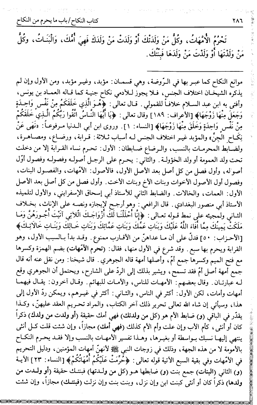 تَحْرُمُ الْأُمَّهَاتُ، وَكُلُّ مَنْ وَلَدَتْك أَوْ وَلَدَتْ مَنْ وَلَدَكَ فَهِيَ أُمُّك، وَالْبَنَاتُ، وَكُلُّ مَنْ وَلَدْتَهَا أَوْ وَلَدْتَ مَنْ وَلَدَهَا فَبِنْتُك.