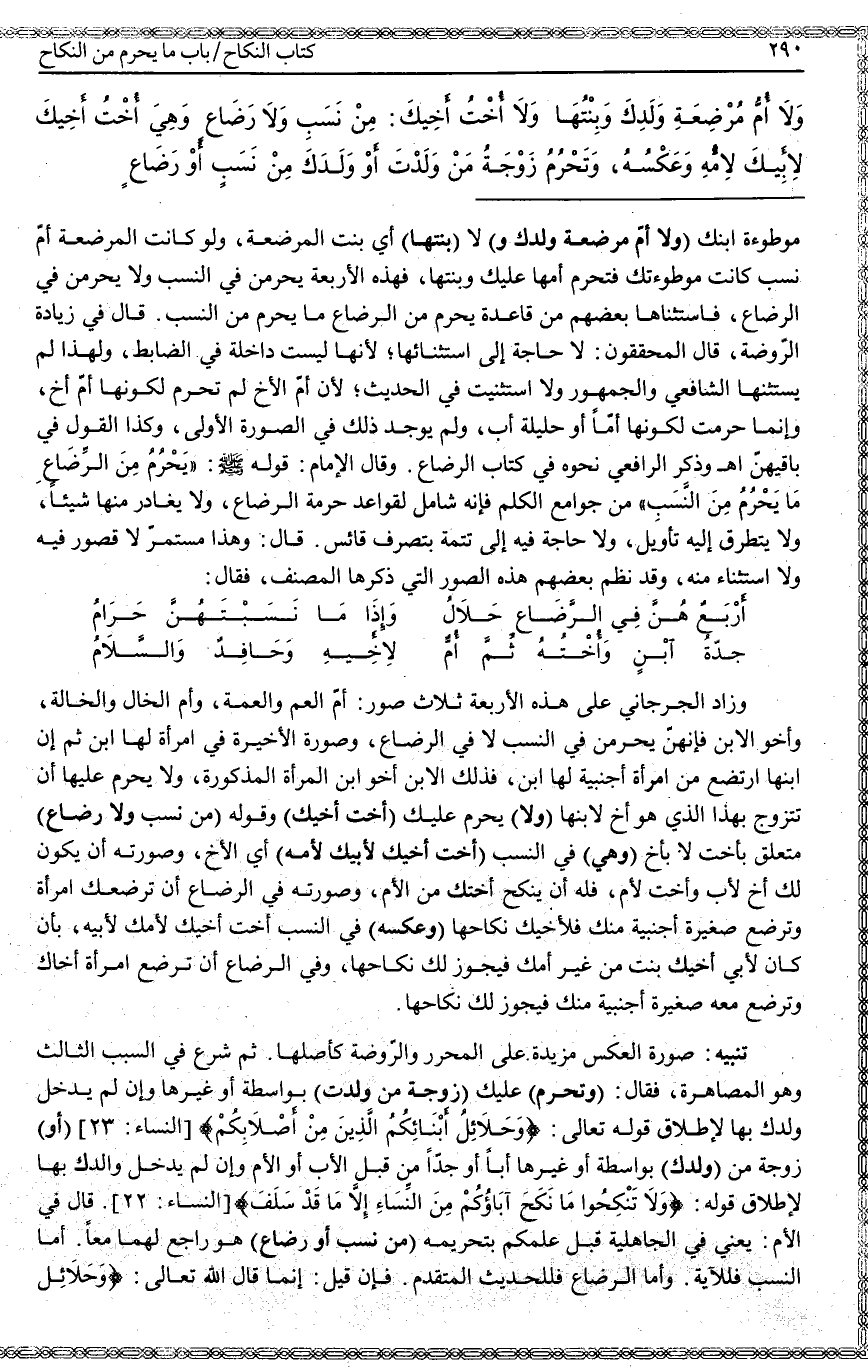 وَلَا أُمُّ مُرْضِعَةِ وَلَدِك وَبِنْتُهَا وَلَا أُخْتُ أَخِيك: مِنْ نَسَبٍ وَلَا رَضَاعٍ وَهِيَ أُخْتُ أَخِيك لِأَبِيك لِأُمِّهِ وَعَكْسُهُ، وَتَحْرُمُ زَوْجَةُ مَنْ وَلَدْتَ أَوْ وَلَدَكَ مِنْ نَسَبٍ أَوْ رَضَاعٍ