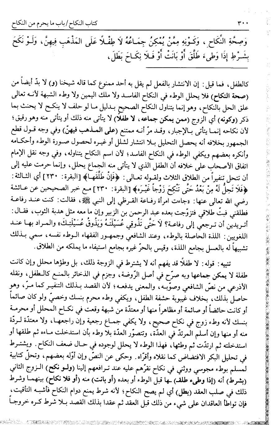تَنْبِيهٌ: قَوْلُهُ: لَا طِفْلًا قَدْ يُفْهِمُ أَنَّهُ لَا يُشْتَرَطُ فِي الزَّوْجَةِ ذَلِكَ، بَلْ وَطْؤُهَا مُحَلِّلٌ وَإِنْ كَانَتْ طِفْلَةً لَا يُمْكِنُ جِمَاعُهَا وَبِهِ صَرَّحَ فِي أَصْلِ الرَّوْضَةِ، وَجَزَمَ فِي الذَّخَائِرِ بِالْمَنْعِ كَالطِّفْلِ، وَنَقَلَهُ الْأَذْرَعِيُّ مِنْ نَصِّ الشَّافِعِيِّ وَصَوَّبَهُ، وَالْمَعْنَى يَدْفَعُهُ؛ لِأَنَّ الْقَصْدَ بِذَلِكَ التَّنْفِيرُ كَمَا مَرَّ، وَهُوَ حَاصِلٌ بِذَلِكَ، بِخِلَافِ غَيْبُوبَةِ حَشَفَةِ الطِّفْلِ، وَيَكْفِي وَطْءُ مُحْرِمٍ بِنُسُكٍ وَخَصِيٍّ وَلَوْ كَانَ صَائِمًا أَوْ كَانَتْ حَائِضًا أَوْ صَائِمَةً أَوْ مُظَاهَرًا مِنْهَا أَوْ مُعْتَدَّةً مِنْ شُبْهَةٍ وَقَعَتْ فِي نِكَاحِ الْمُحَلَّلِ أَوْ مُحْرِمَةً بِنُسُكٍ؛ لِأَنَّهُ وَطْءُ زَوْجٍ فِي نِكَاحٍ صَحِيحٍ، وَلَا يَكْفِي جِمَاعُ رَجْعِيَّةٍ وَإِنْ رَاجَعَهَا، وَلَا مُعْتَدَّةٍ لِرِدَّةٍ مِنْهُ أَوْ مِنْهَا وَإِنْ أَسْلَمَ الْمُرْتَدُّ فِي الْعِدَّةِ، وَتُتَصَوَّرُ الْعِدَّةُ بِلَا وَطْءٍ بِأَنْ اسْتَدْخَلَتْ مَاءَهُ ثُمَّ طَلَّقَهَا أَوْ اسْتَدْخَلَتْهُ ثُمَّ ارْتَدَّتْ ثُمَّ وَطِئَهَا، فَهَذَا الْوَطْءُ لَا يُحَلِّلُ لِوُجُودِهِ فِي حَالِ ضَعْفِ النِّكَاحِ. وَيُشْتَرَطُ فِي تَحْلِيلِ الْبِكْرِ الِافْتِضَاضُ كَمَا نَقَلَاهُ وَأَقَرَّاهُ. وَحَكَى عَنْ النَّصِّ وَإِنْ أَوَّلَهُ بَعْضُهُمْ، وَتَحِلُّ كِتَابِيَّةٌ لِمُسْلِمٍ بِوَطْءِ مَجُوسِيٍّ وَوَثَنِيٍّ فِي نِكَاحٍ نُقِرُّهُمْ عَلَيْهِ عِنْدَ تَرَافُعِهِمْ إلَيْنَا (وَلَوْ نَكَحَ) الزَّوْجُ الثَّانِي (بِشَرْطِ) أَنَّهُ (إذَا وَطِئَ طَلَّقَ) هَا قَبْلَ الْوَطْءِ أَوْ بَعْدَهُ (أَوْ بَانَتْ) مِنْهُ (أَوْ فَلَا نِكَاحَ) بَيْنَهُمَا وَشَرَطَ ذَلِكَ فِي صُلْبِ الْعَقْدِ (بَطَلَ) أَيْ لَمْ يَصِحَّ النِّكَاحُ؛ لِأَنَّهُ شَرْطٌ يَمْنَعُ دَوَامَ النِّكَاحِ فَأَشْبَهَ التَّأْقِيتَ، فَإِنْ تَوَاطَأَ الْعَاقِدَانِ عَلَى شَيْءٍ مِنْ ذَلِكَ قَبْلَ الْعَقْدِ ثُمَّ عَقَدَا بِذَلِكَ الْقَصْدِ بِلَا شَرْطٍ كُرِهَ خُرُوجًا