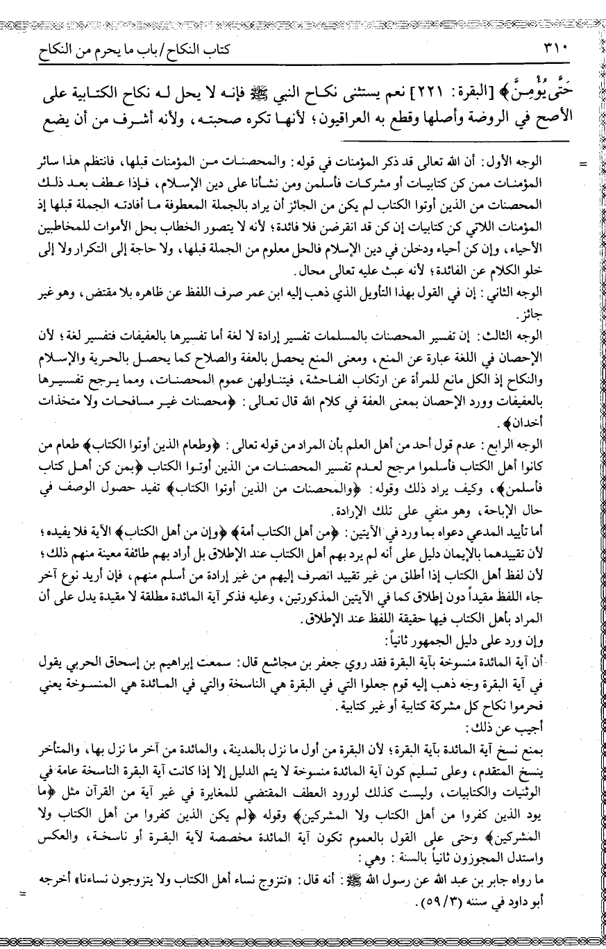 ـــــــــــــــــــــــــــــQنَعَمْ يُسْتَثْنَى نِكَاحُ النَّبِيِّ - صَلَّى اللَّهُ عَلَيْهِ وَسَلَّمَ - فَإِنَّهُ لَا يَحِلُّ لَهُ نِكَاحُ الْكِتَابِيَّةِ عَلَى الْأَصَحِّ فِي الرَّوْضَةِ وَأَصْلِهَا وَقَطَعَ بِهِ الْعِرَاقِيُّونَ؛ لِأَنَّهَا تُكْرَهُ صُحْبَتَهُ، وَلِأَنَّهُ أَشْرَفُ مِنْ أَنْ يَضَعَ