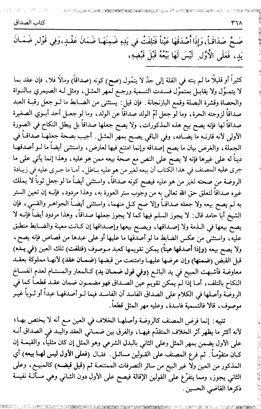 أُجِيبَ بِصِحَّةِ جَعْلِهَا صَدَاقًا فِي الْجُمْلَةِ، وَالْغَرَضُ بَيَانُ مَا يَصِحُّ إصْدَاقُهُ وَإِنَّمَا امْتَنَعَ فِيهَا لِعَارِضٍ، وَاسْتُثْنِيَ أَيْضًا مَا لَوْ أَصْدَقَهَا دَيْنًا لَهُ عَلَى غَيْرِهَا فَإِنَّهُ لَا يَصِحُّ عَلَى النَّصِّ مَعَ صِحَّةِ بَيْعِهِ مِمَّنْ هُوَ عَلَيْهِ، وَهَذَا إنَّمَا يَأْتِي عَلَى مَا جَرَى عَلَيْهِ الْمُصَنِّفُ فِي هَذَا الْكِتَابِ أَنَّ بَيْعَهُ لِغَيْرِ مَنْ هُوَ عَلَيْهِ بَاطِلٌ، أَمَّا مَا جَرَى عَلَيْهِ فِي زِيَادَةِ الرَّوْضَةِ مِنْ صِحَّتِهِ لِغَيْرِ مَنْ هُوَ عَلَيْهِ فَيَصِحُّ كَوْنُهُ صَدَاقًا، وَاسْتُثْنِيَ أَيْضًا مَا لَوْ جَعَلَ ثَوْبًا لَا يَمْلِكُ غَيْرَهُ صَدَاقًا لِتَعَلُّقِ حَقِّ اللَّهِ تَعَالَى بِهِ مِنْ وُجُوبِ سَتْرِ الْعَوْرَةِ بِهِ، وَهَذَا مَرْدُودٌ، فَإِنَّهُ إنْ تَعَيَّنَ السَّتْرُ بِهِ لَمْ يَصِحَّ بَيْعُهُ وَلَا جَعْلُهُ صَدَاقًا وَإِلَّا صَحَّ كُلٌّ مِنْهُمَا، وَاسْتُثْنِيَ أَيْضًا الْجَوَاهِرُ وَالْقِسِيُّ، فَإِنَّ الشَّيْخَ أَبَا حَامِدٍ قَالَ: لَا يَجُوزُ السَّلَمُ فِيهَا كَمَا لَا يَجُوزُ جَعْلُهَا صَدَاقًا، وَهَذَا مَرْدُودٌ أَيْضًا فَإِنَّهُ لَا يَصِحُّ بَيْعُهَا فِي الذِّمَّةِ وَلَا إصْدَاقُهَا، وَيَصِحُّ بَيْعُهَا وَإِصْدَاقُهَا إنْ كَانَتْ مُعَيَّنَةً وَالضَّابِطُ مُنْطَبِقٌ عَلَيْهِ، وَاسْتُثْنِيَ مِنْ عَكْسِ الضَّابِطِ مَا لَوْ أَصْدَقَهَا مَا عَلَيْهَا أَوْ عَلَى عَبْدِهَا مِنْ قِصَاصٍ فَإِنَّهُ يَصِحُّ، وَلَا يَصِحُّ بَيْعُهُ.