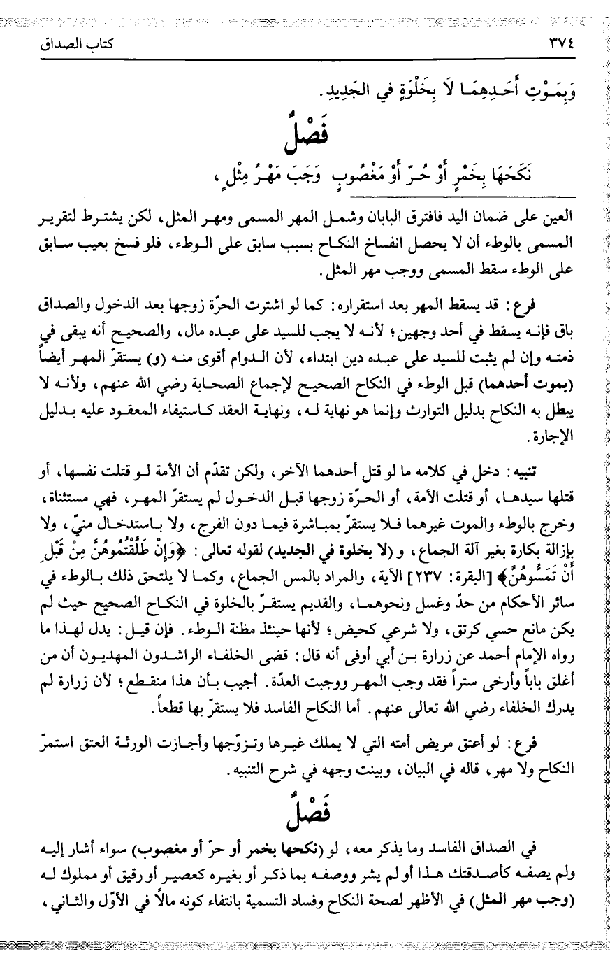 أُجِيبَ بِأَنَّ هَذَا مُنْقَطِعٌ؛ لِأَنَّ زُرَارَةَ لَمْ يُدْرِكْ الْخُلَفَاءَ - رَضِيَ اللَّهُ تَعَالَى عَنْهُمْ -. أَمَّا النِّكَاحُ الْفَاسِدُ فَلَا يَسْتَقِرُّ بِهَا قَطْعًا.