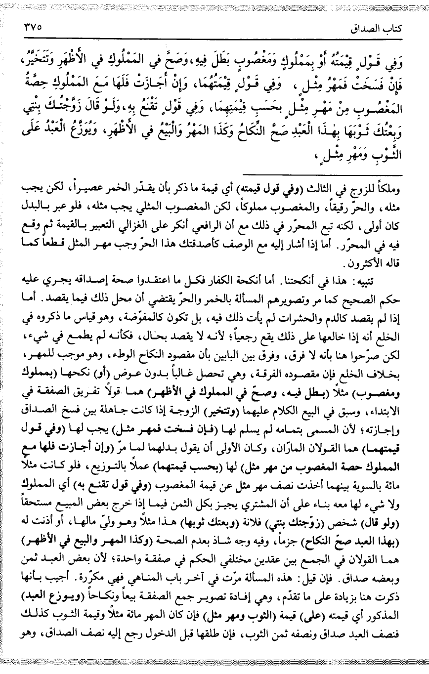 ـــــــــــــــــــــــــــــQوَمِلْكًا لِلزَّوْجِ فِي الثَّالِثِ (وَفِي قَوْلٍ قِيمَتُهُ) أَيْ قِيمَةُ مَا ذُكِرَ بِأَنْ يُقَدَّرَ الْخَمْرُ عَصِيرًا، لَكِنْ يَجِبُ مِثْلُهُ، وَالْحُرُّ رَقِيقًا، وَالْمَغْصُوبُ مَمْلُوكًا، لَكِنَّ الْمَغْصُوبَ الْمِثْلِيَّ يَجِبُ مِثْلُهُ، فَلَوْ عَبَّرَ بِالْبَدَلِ كَانَ أَوْلَى، لَكِنَّهُ تَبِعَ الْمُحَرَّرَ فِي ذَلِكَ مَعَ أَنَّ الرَّافِعِيَّ أَنْكَرَ عَلَى الْغَزَالِيِّ التَّعْبِيرَ بِالْقِيمَةِ ثُمَّ وَقَعَ فِيهِ فِي الْمُحَرَّرِ. أَمَّا إذَا أَشَارَ إلَيْهِ مَعَ الْوَصْفِ كَأَصْدَقْتُك هَذَا الْحُرَّ وَجَبَ مَهْرُ الْمِثْلِ قَطْعًا كَمَا قَالَهُ الْأَكْثَرُونَ.